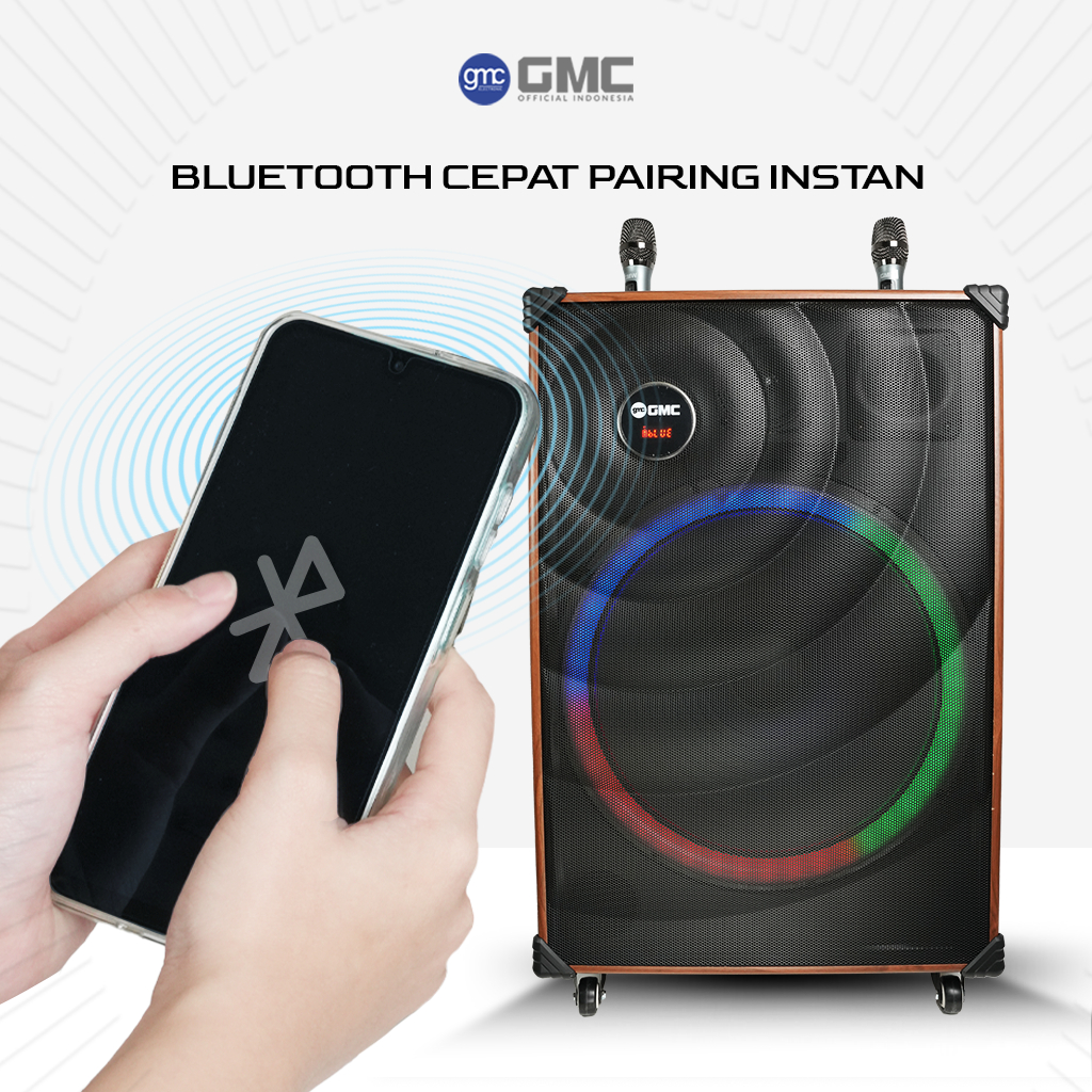 GMC Speaker 883J – Speaker Karaoke Bluetooth 18” – 160W, 2 Mic Wireless, Lampu LED, USB, AUX, TF
