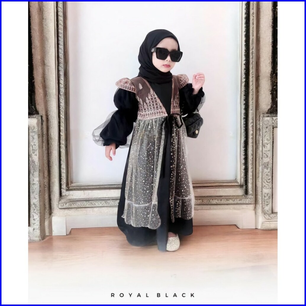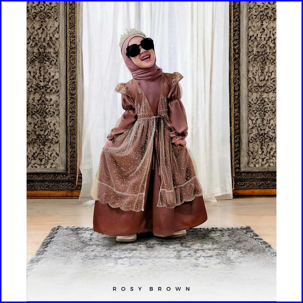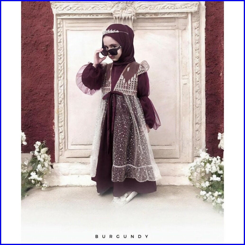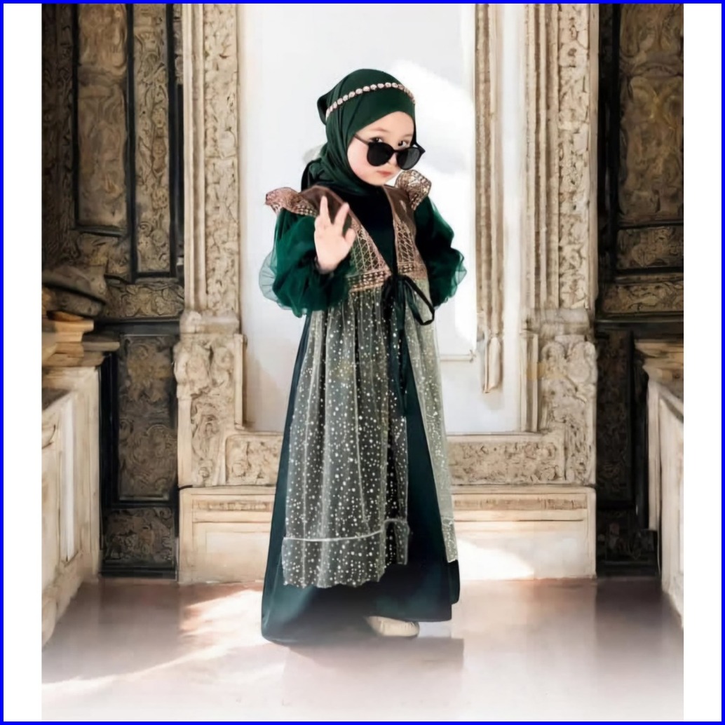 Femes Azzumi Kids Series Gamis Anak Perempuan Lebaran Lucu Syari Velvet Tulle Glitter Usia 7-10 Tahun