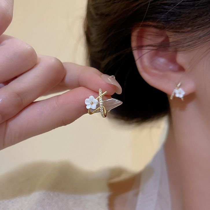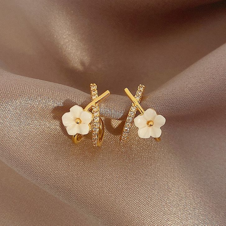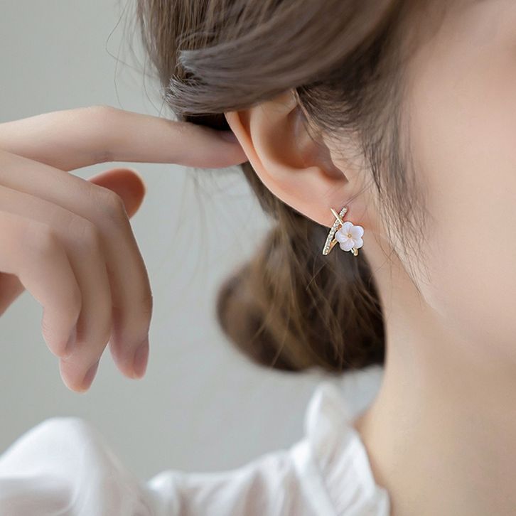 Perhiasan Wanita Anting Lucu Anting Anak Dan Dewasa Anting Tusuk Stud White Flower Bunga Putih Wanita Mata Zircon Copper