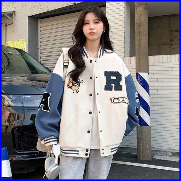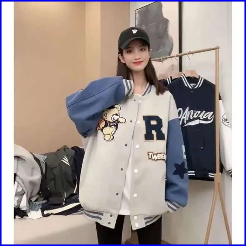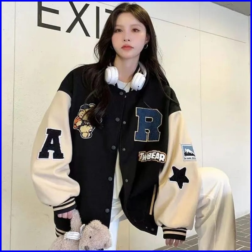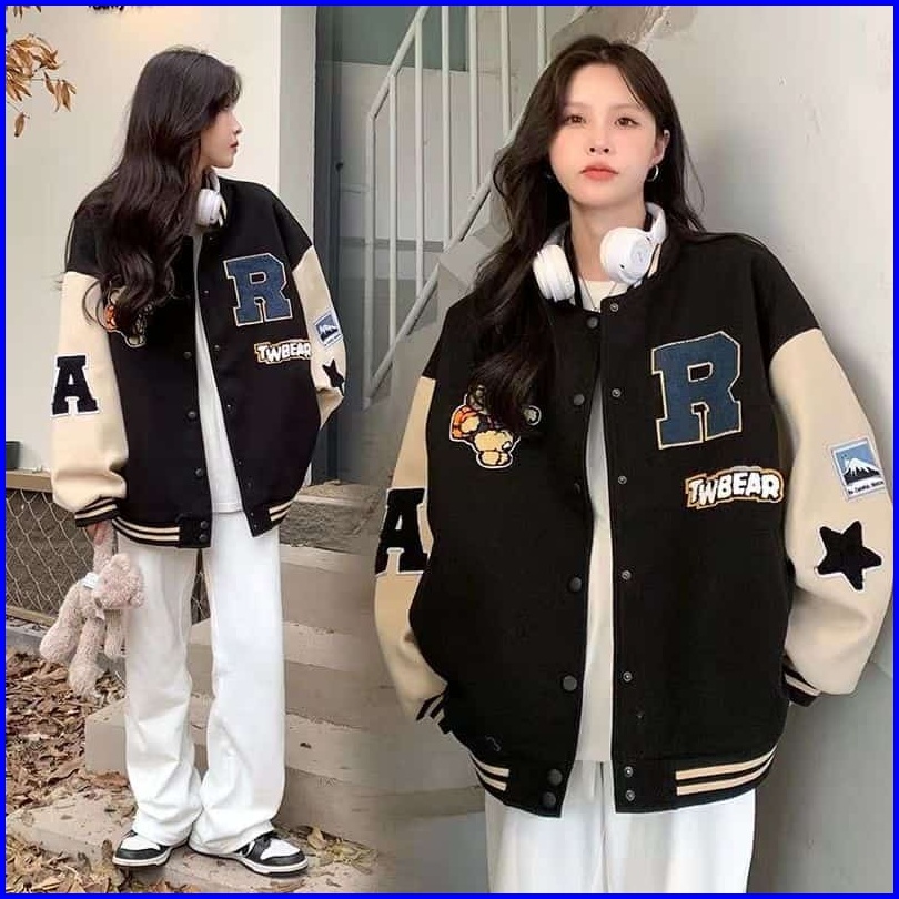 Femes R Tw Bear Jaket Baseball Outerwear Jacket Varsity Unisex Fleece Premium
