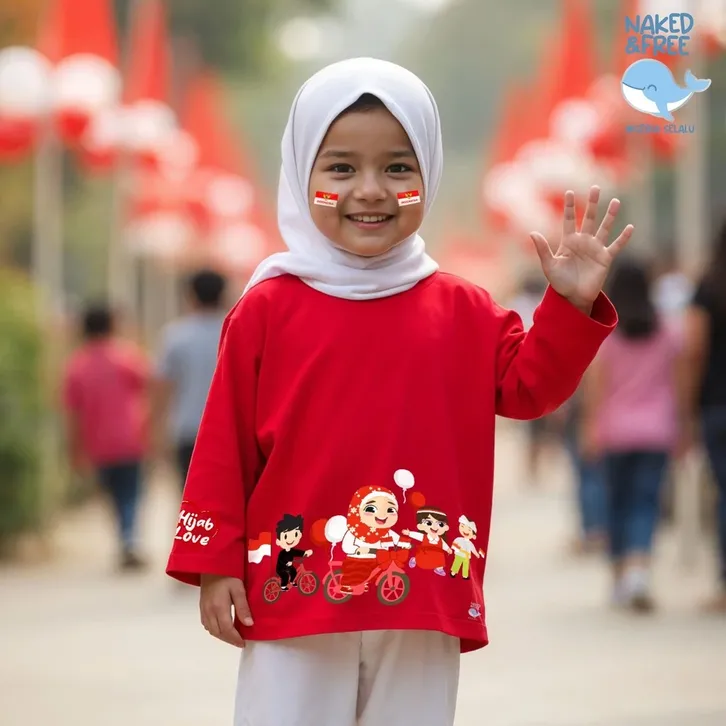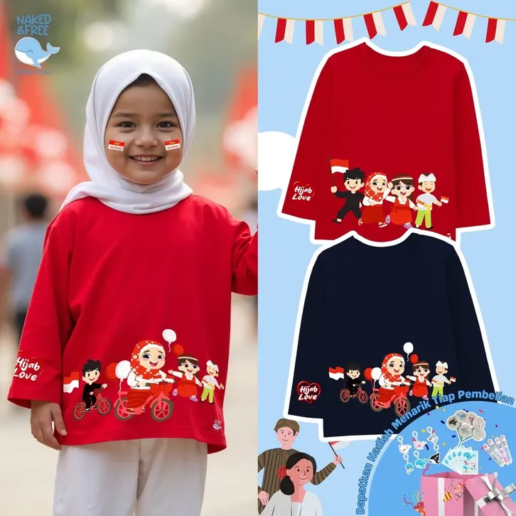 ORIGINAL NAKED & FREE BAJU KAOS PANJANG ANAK PEREMPUAN – “HIJAB KIDS CARNAVAL” KEMERDEKAAN | KATUN 30S IDN-1