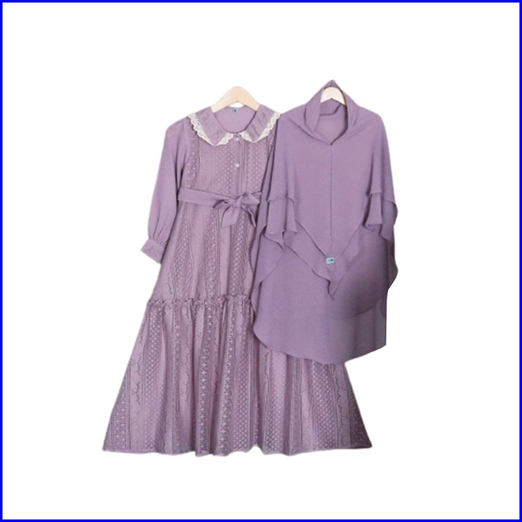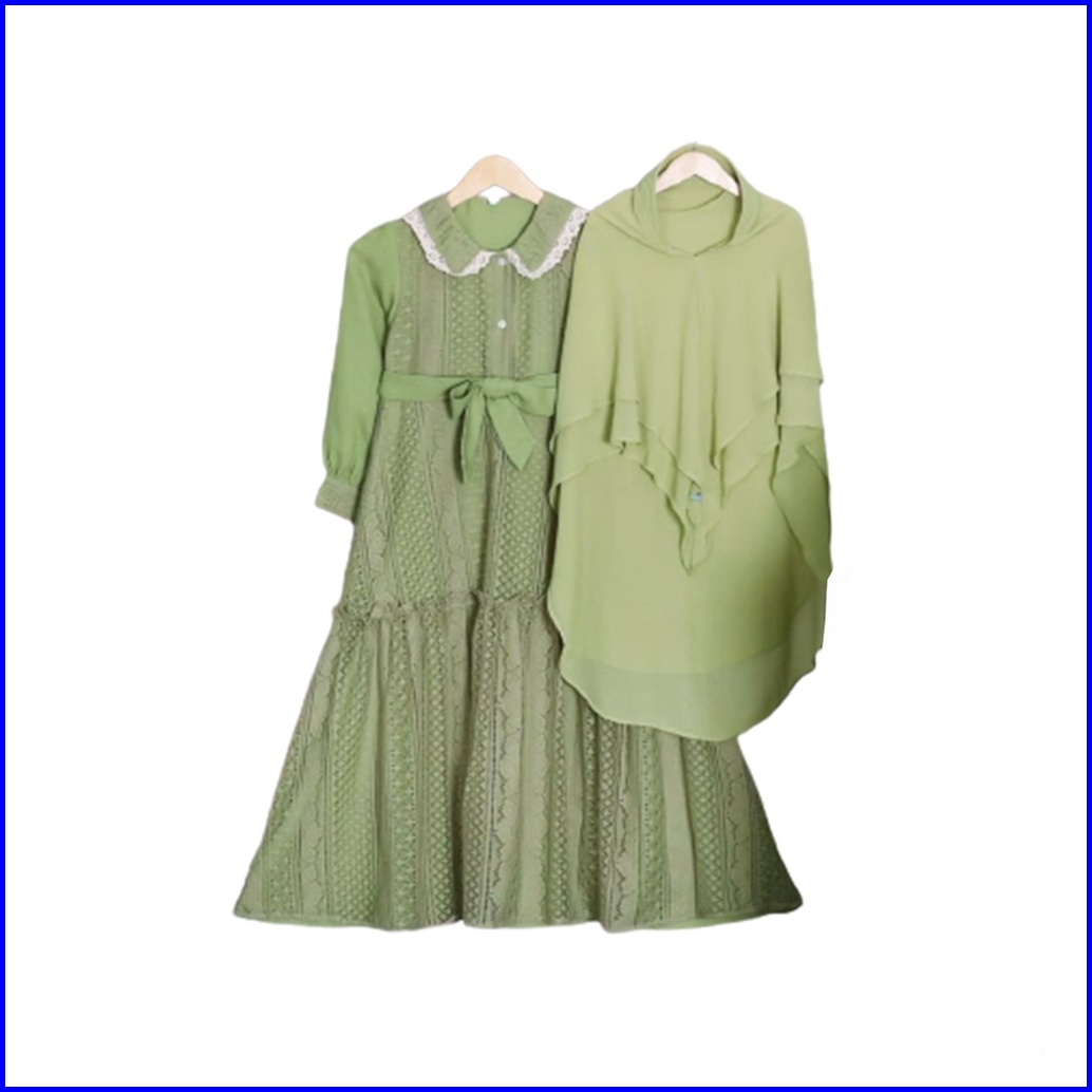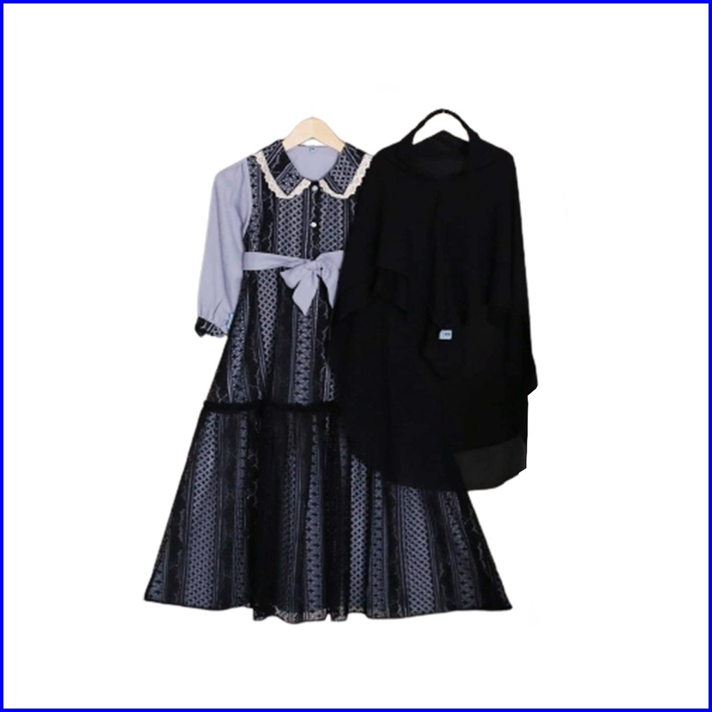 Femes Ghania Set Gamis Anak Premium Dress Setelan Syari Anak Perempuan Set Muslim