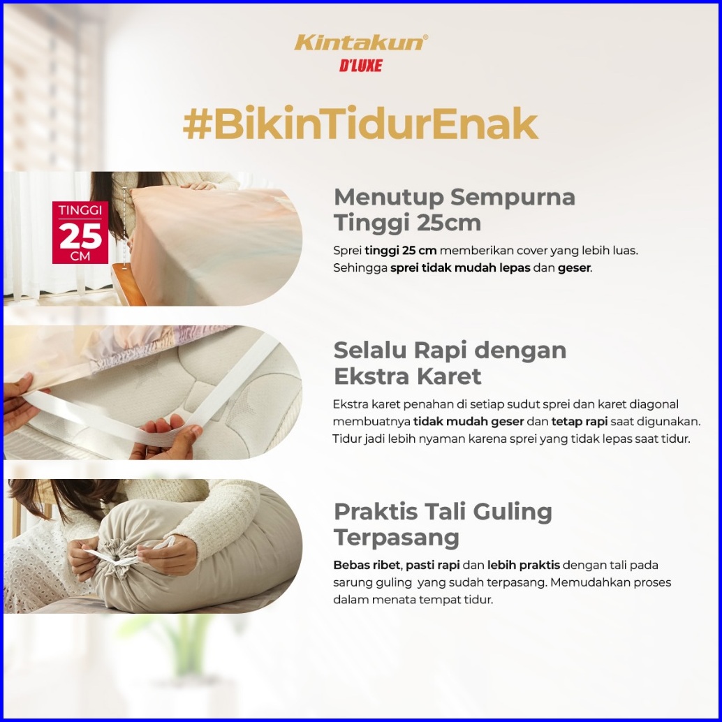 Kintakun Sprei Fitted 180 X 200 D Luxe Minimalis Aesthetic Microtex Anti Geser 25 Cm Multivarian