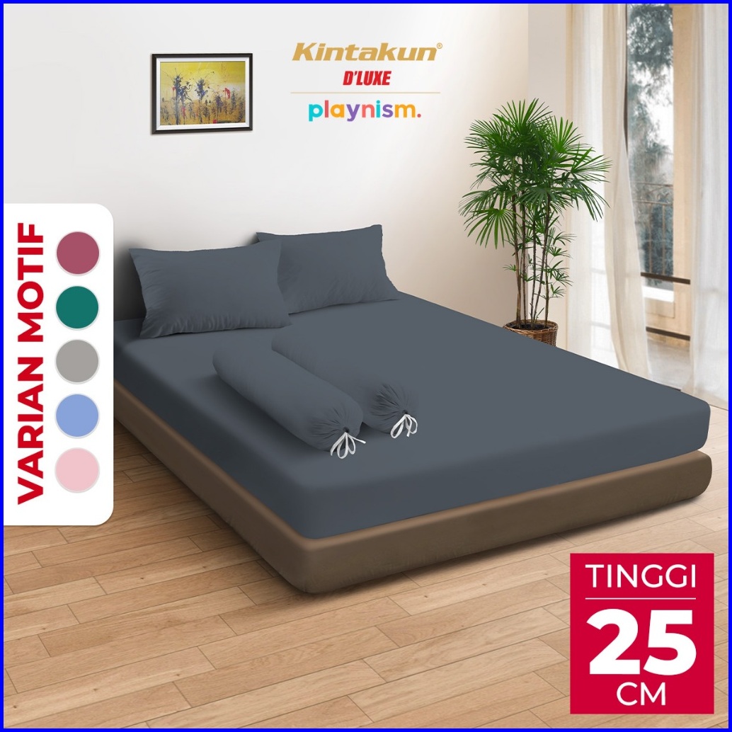 Kintakun Sprei Fitted 180 X 200 Dluxe Aesthetic Polos Microtex Tinggi 25 Cm B2 Multivarian