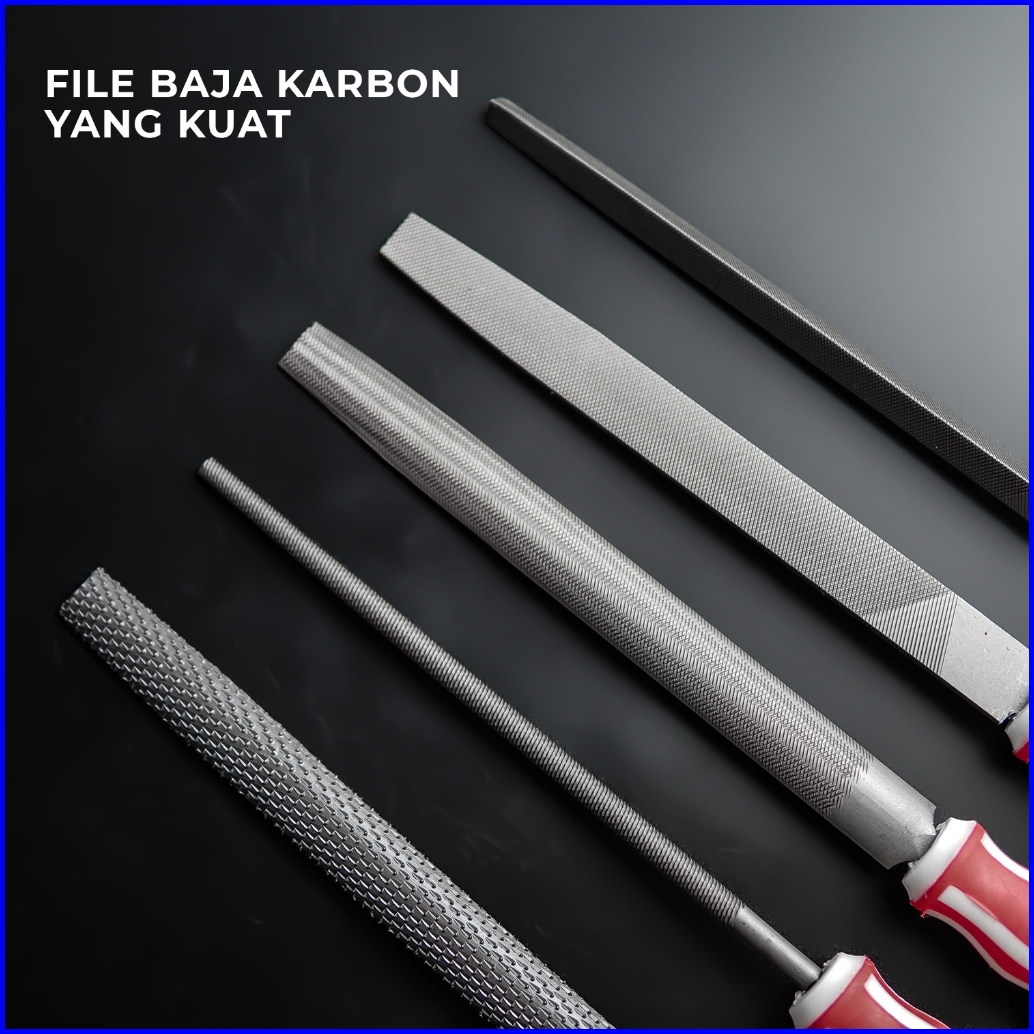 Allefix Kikir Besi 8 Inch Lurus - Bulat - Kotak - Segitiga - Setengah Bulat 20cm- 6737