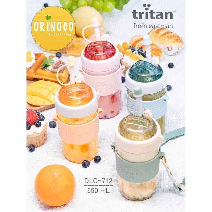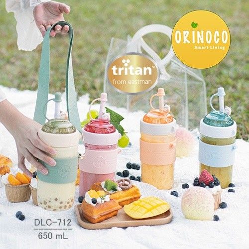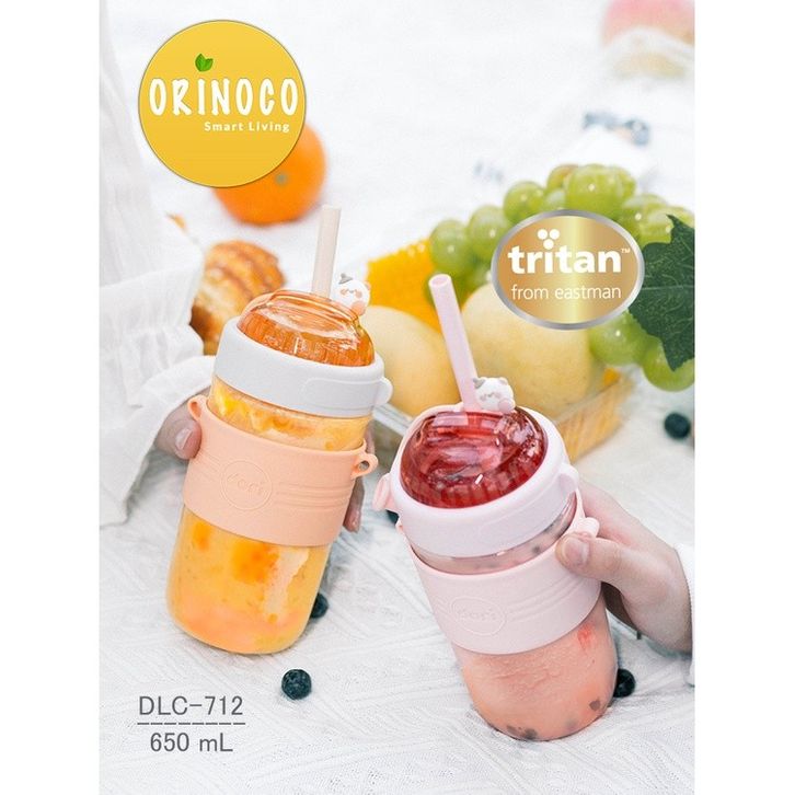 Orinoco Botol Minum DLC-712 Model Gelas Dengan Tali Panjang & Sedotan 650ML Glass Bottle Body Silicone Bpa Free