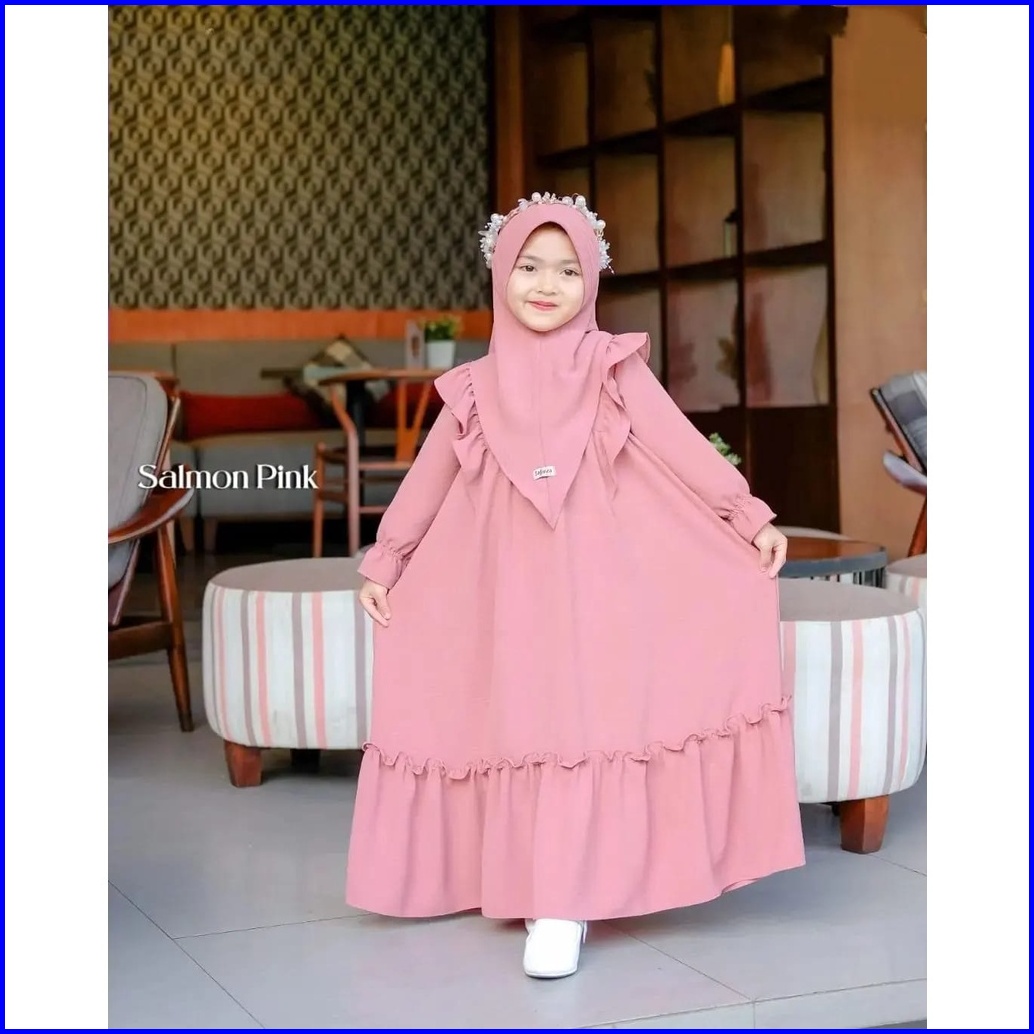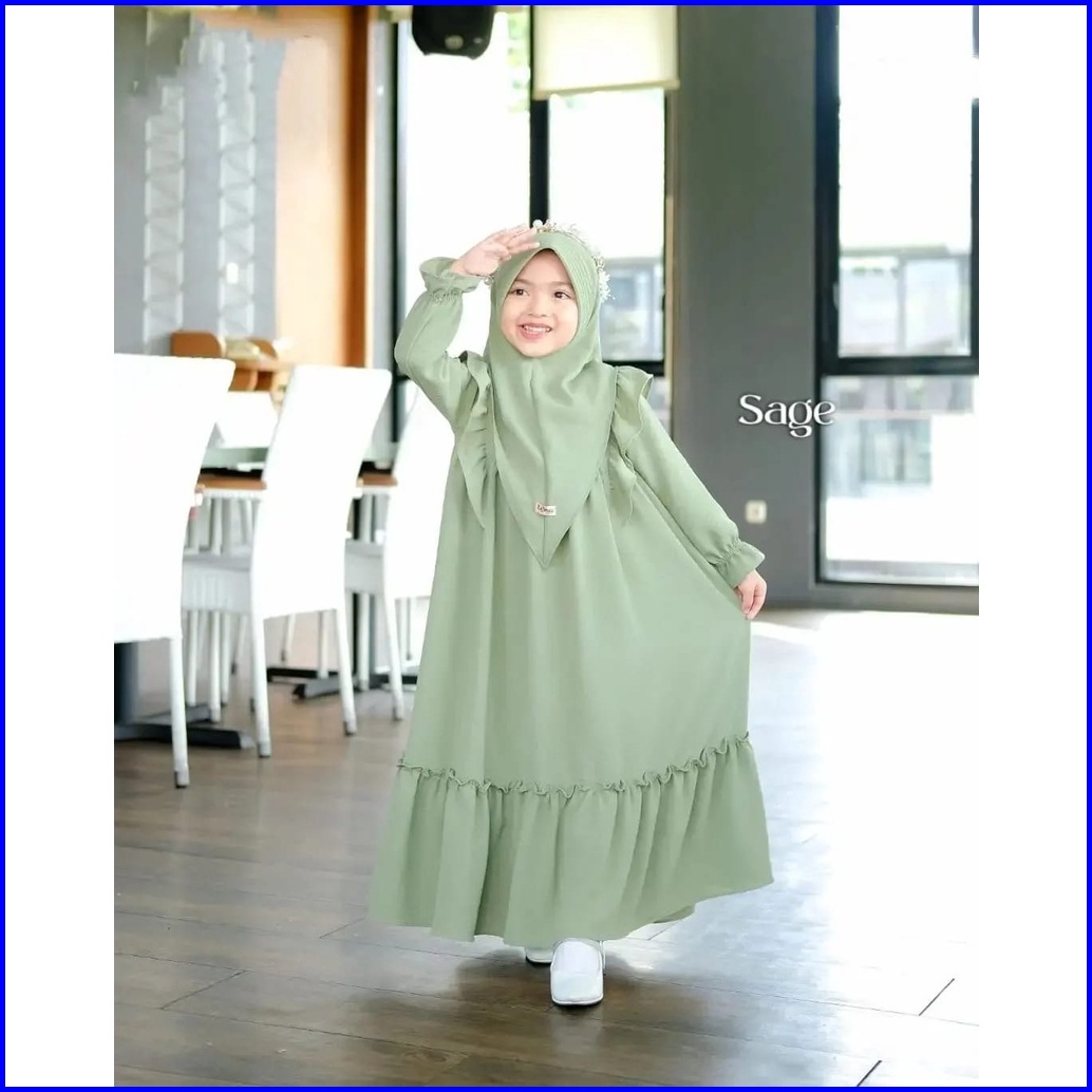 Femes Kayla Syari Kids Gamis Muslim Modern Kekinian Matt Cringkle Polos Basic Premium Ootd Lebaran Casual Daily