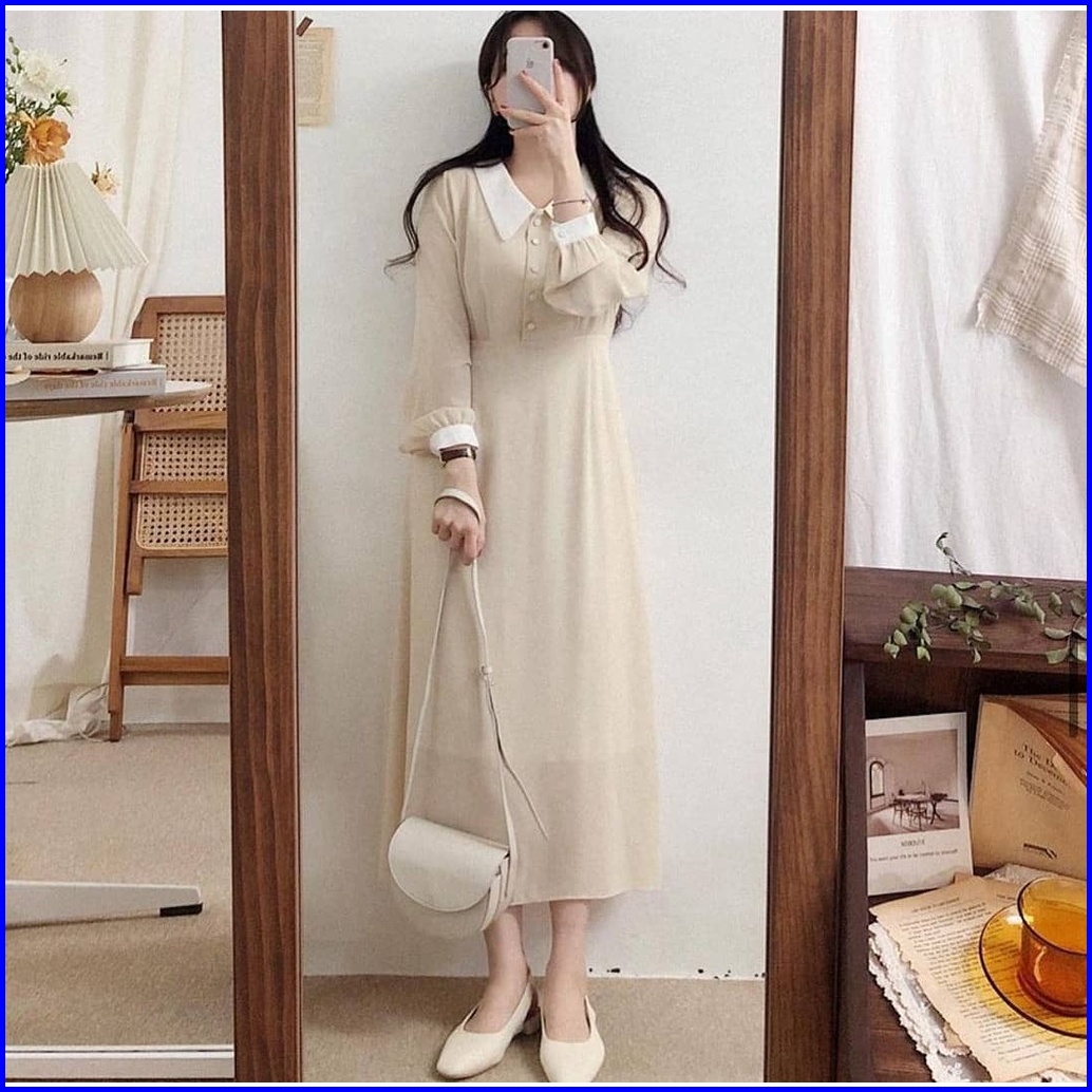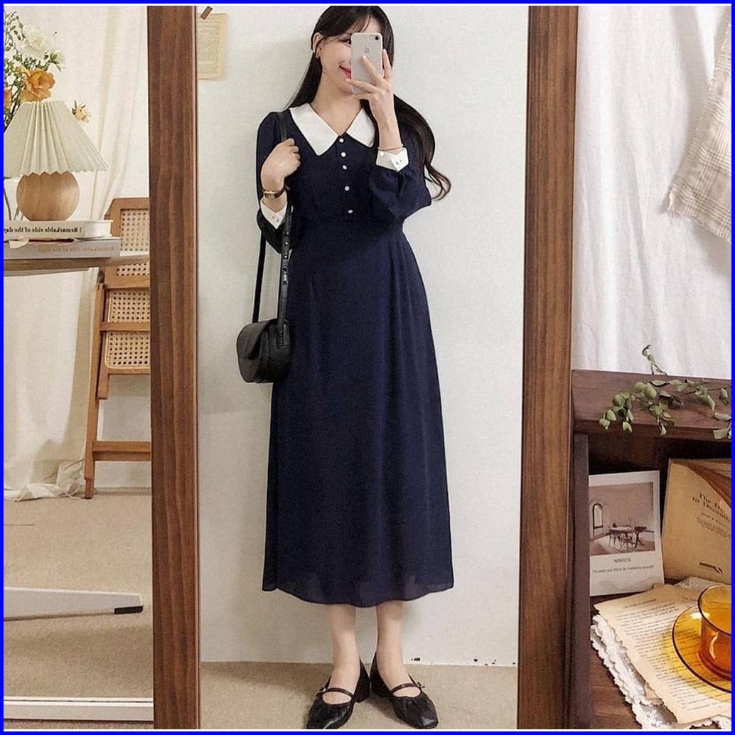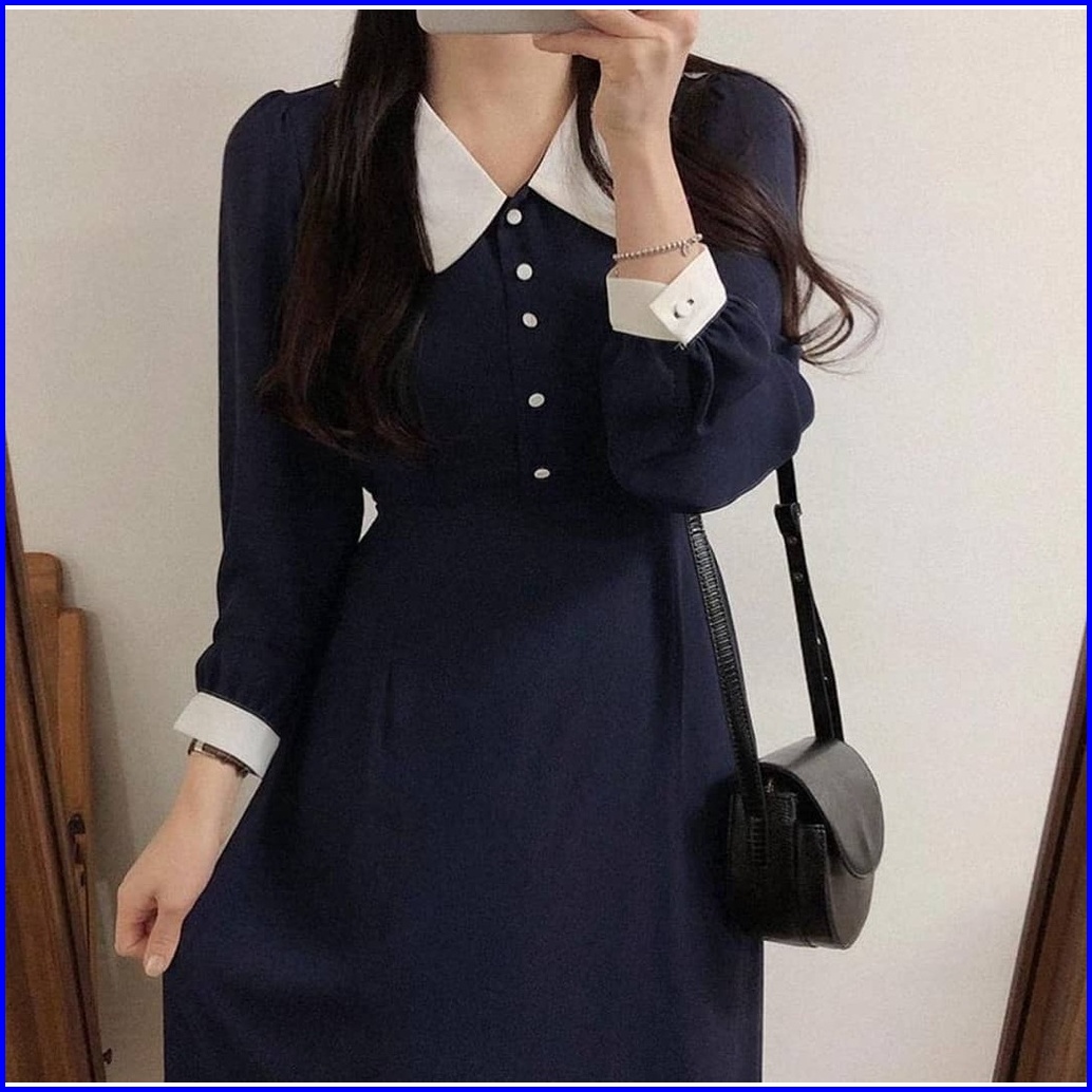 Femes Nicole Dress L Dres Midi Maxy Polos Basic Premium Korean Style