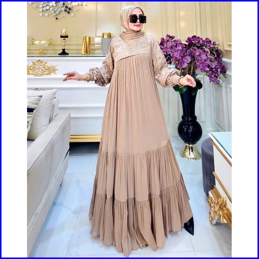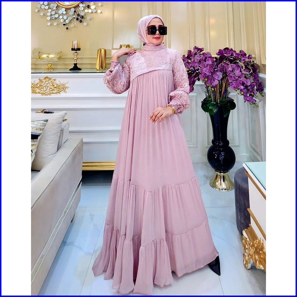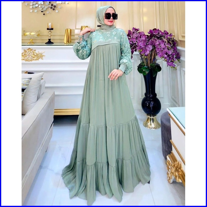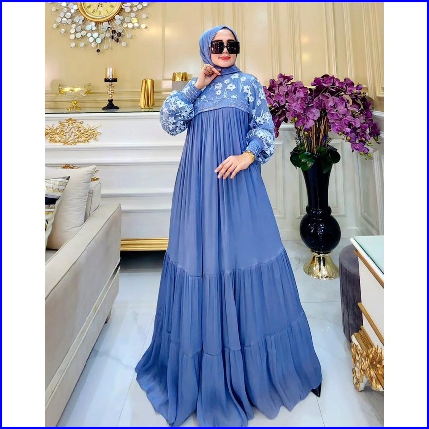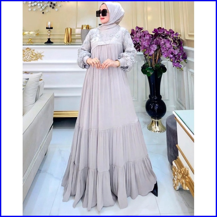 Femes Syaila Dress Maxy Wanita Muslim Matt Ceruty Babydoll Apk Swarovski Premium Ootd Kondangan