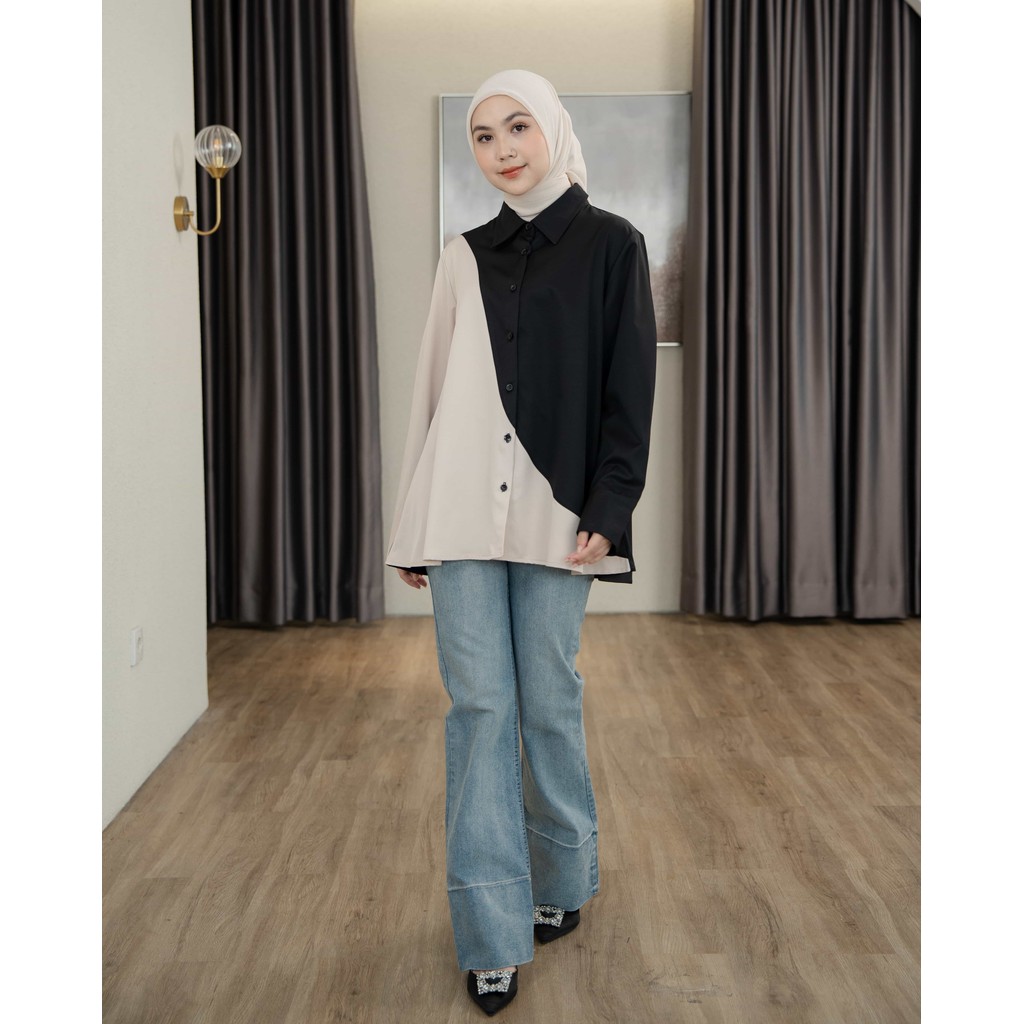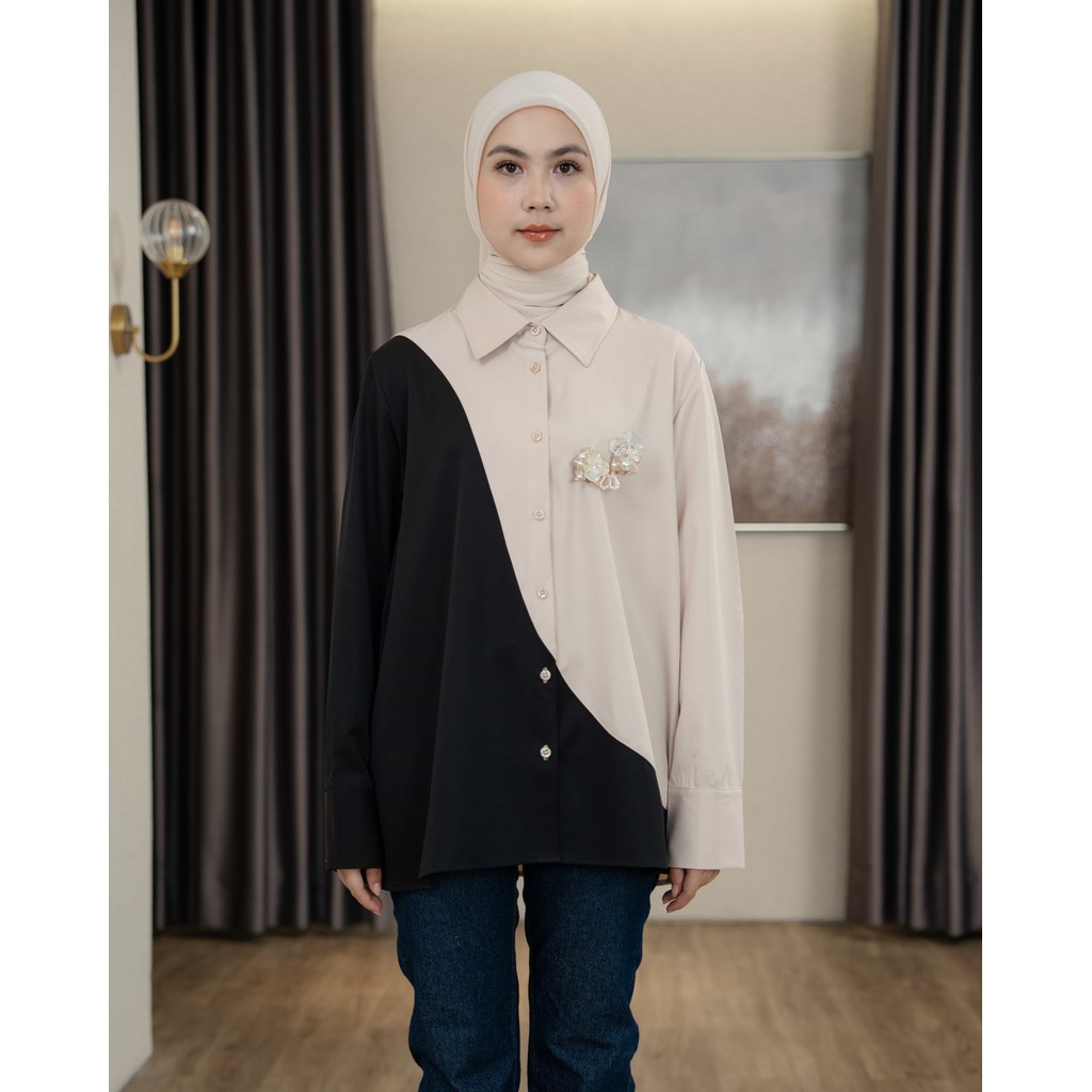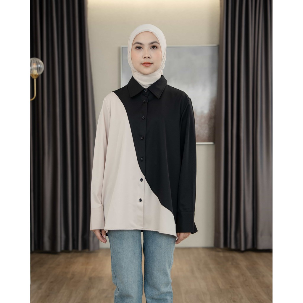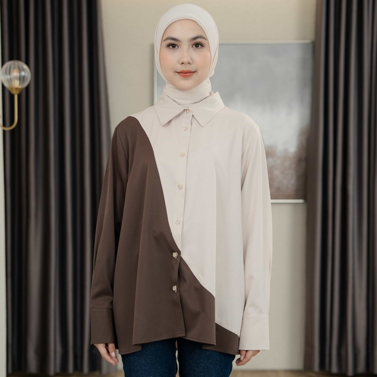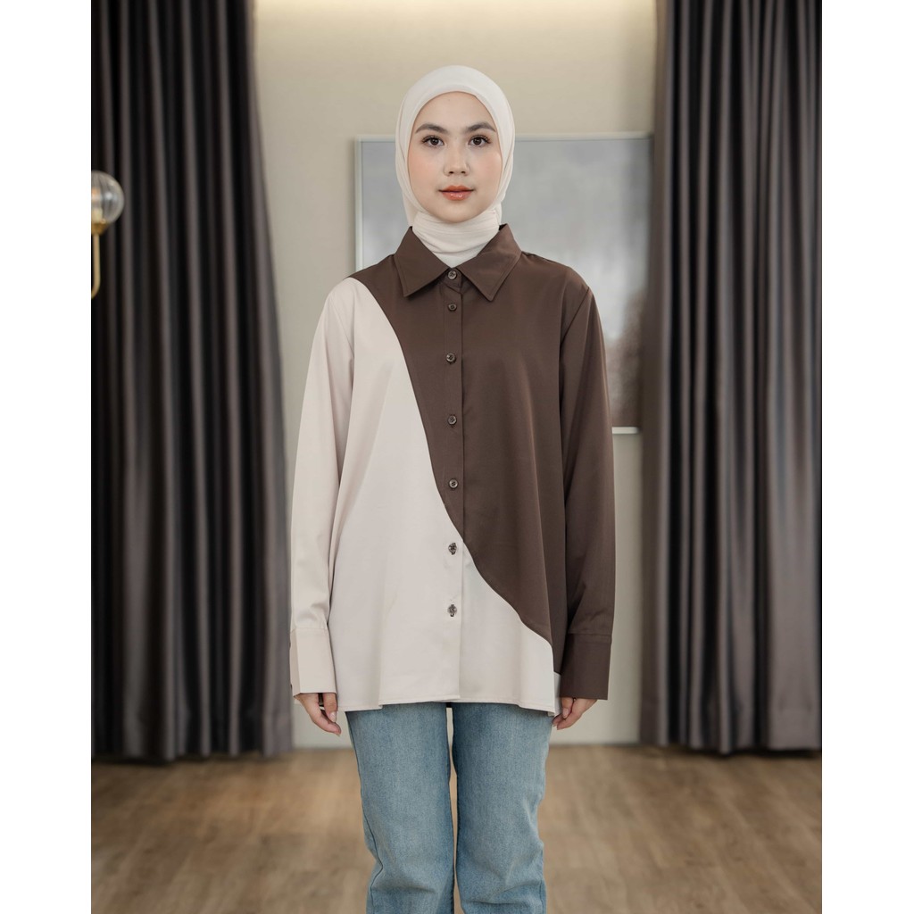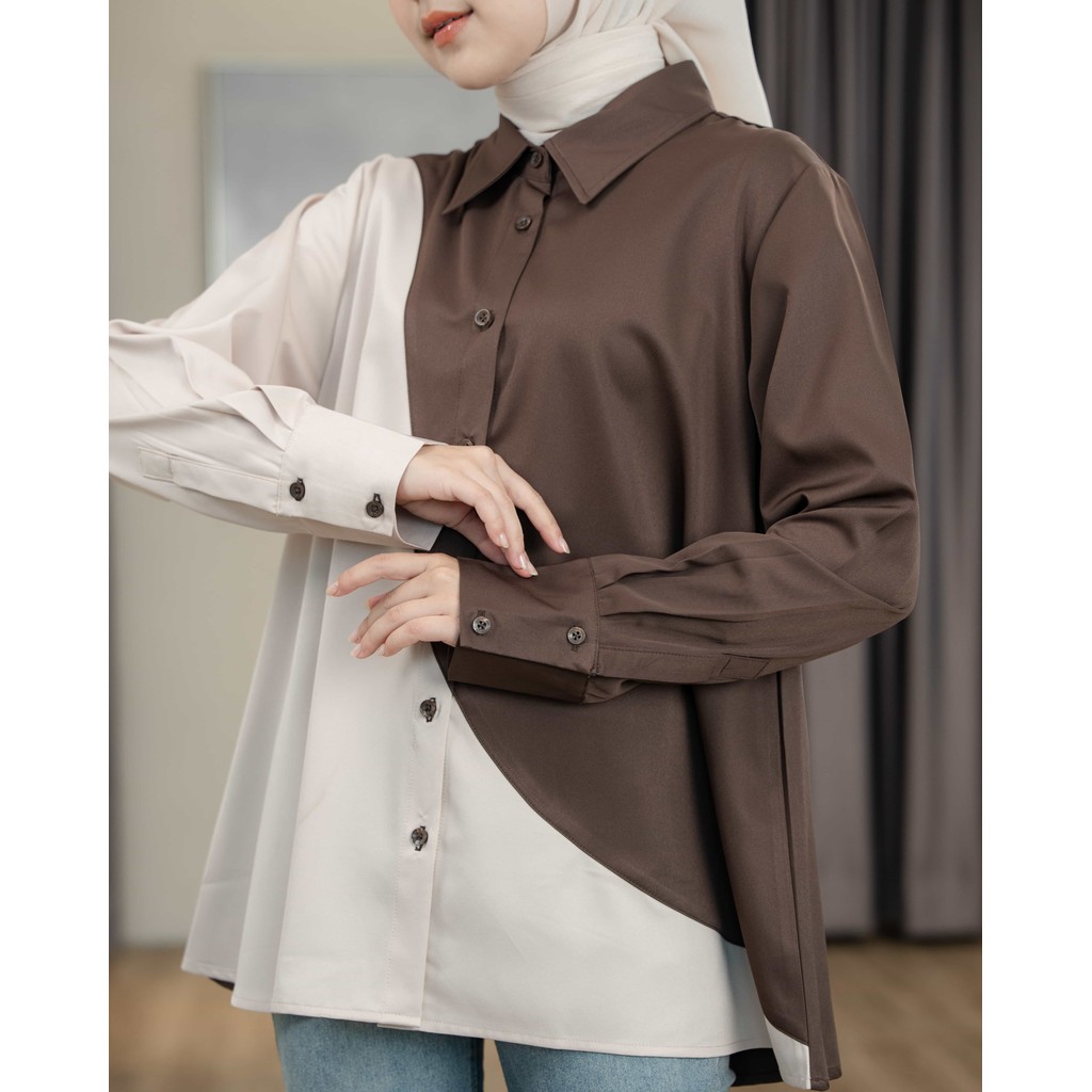 Mayoutfit Leticia Shirt | Kemeja Wanita Basic Kombi Two Tone mahogany Original Best Seller Official Store