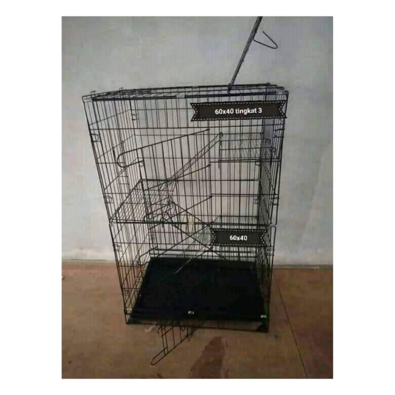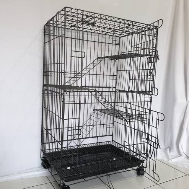 KANDANG KUCING 3 TINGKAT UKURAN 60x40x90cm Plus Roda WARNA HITAM