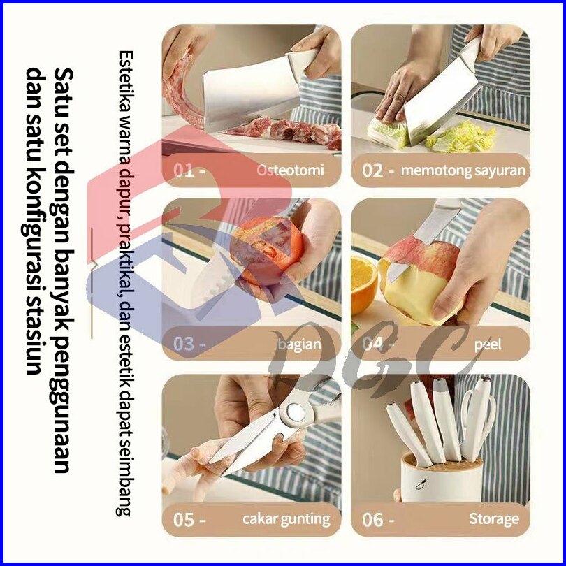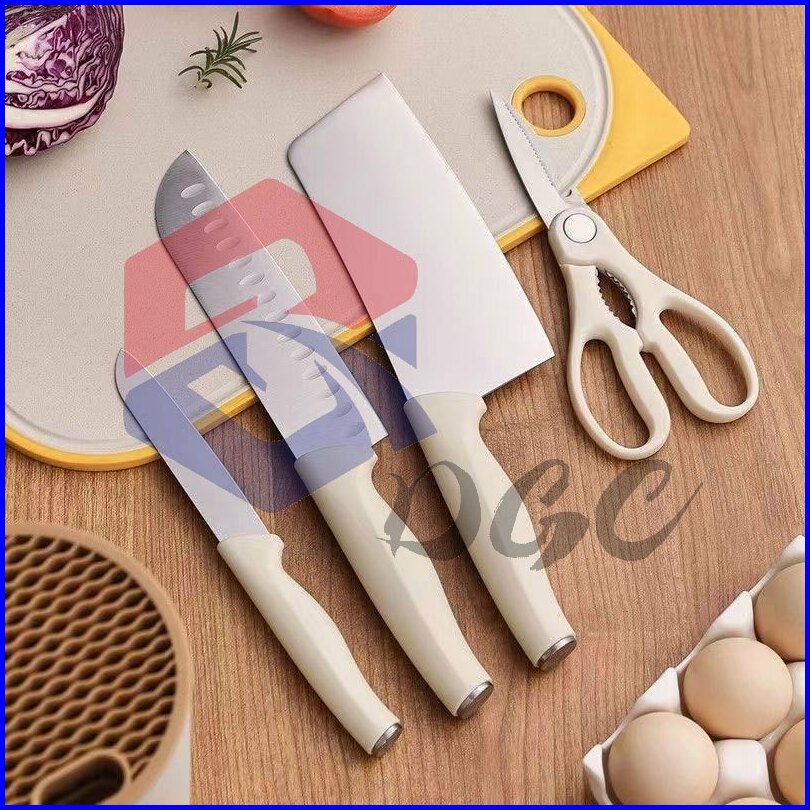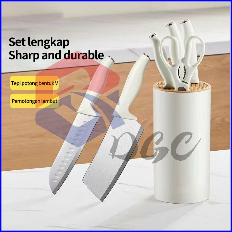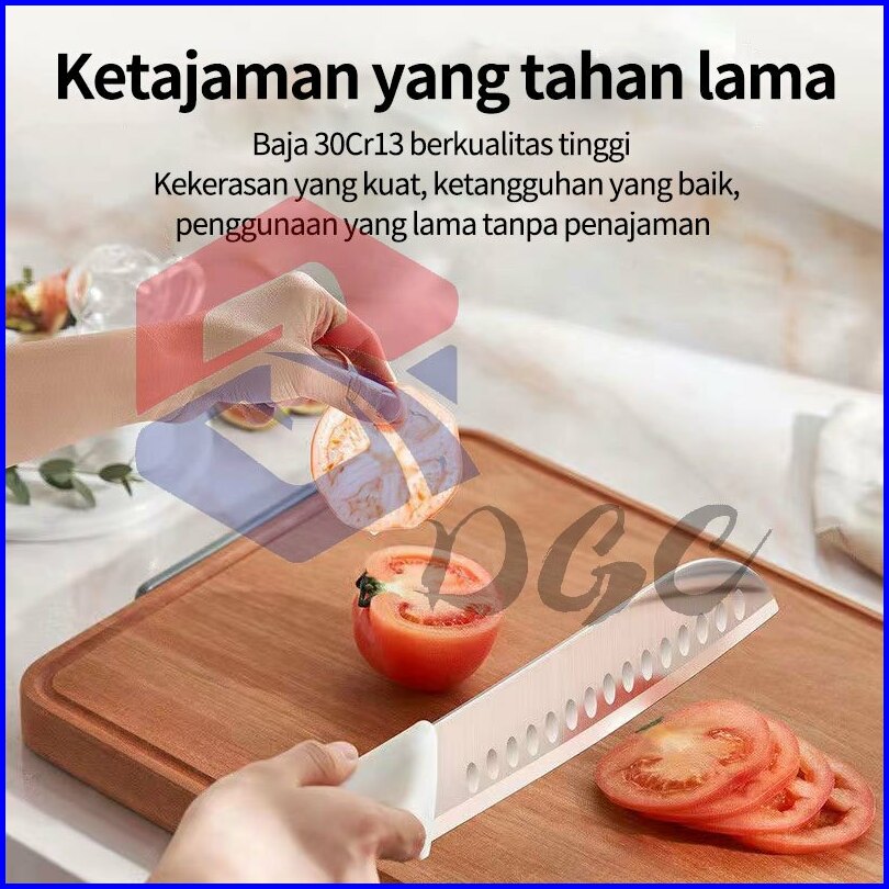 Dgc Set Pisau Dapur Isi 5pcs Stainless Knife Set Untuk Memotong Daging Buah Mata Pisau Tajam Putih