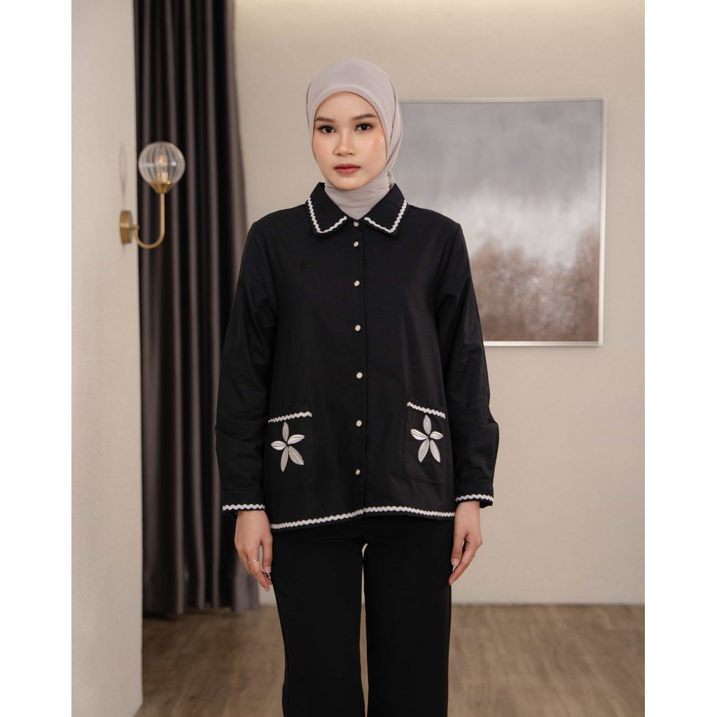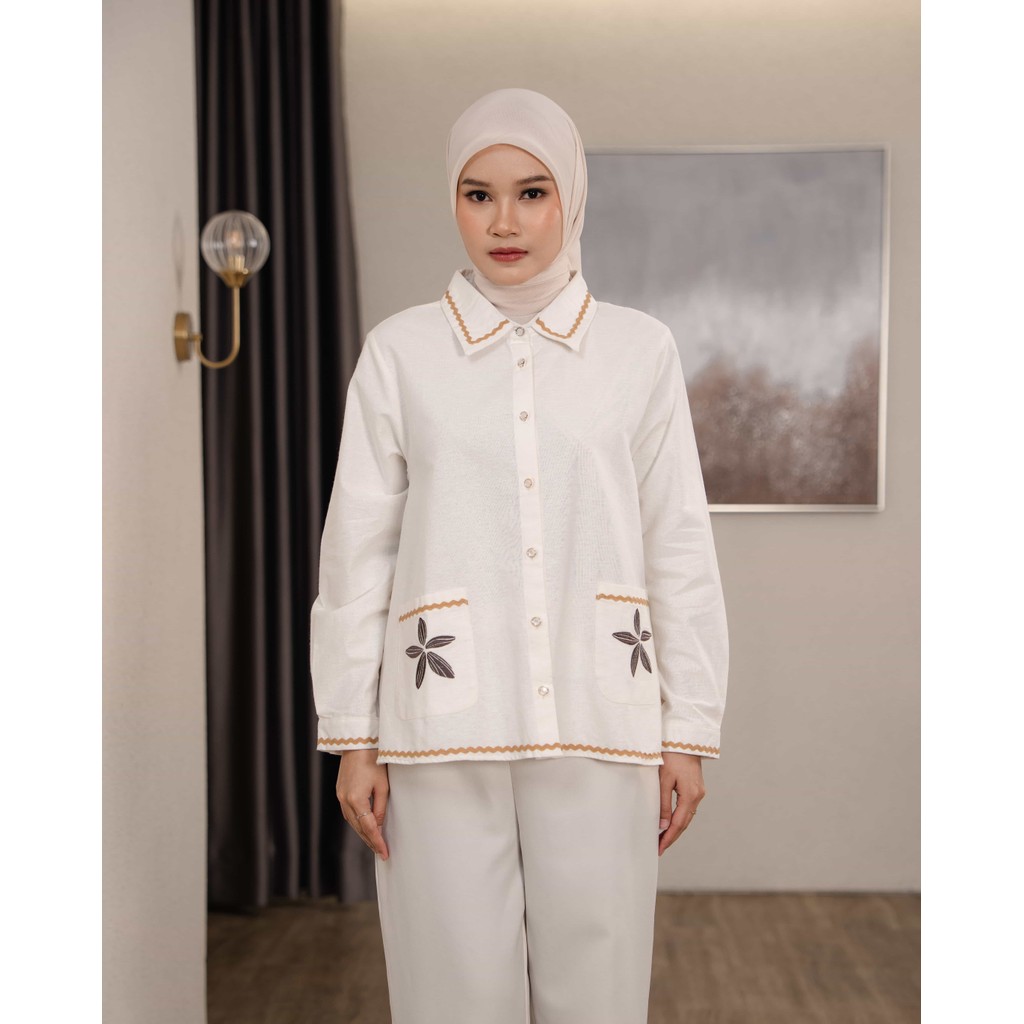 Mayoutfit Nazra Shirt | Kemeja Wanita Linen Basic Motif Bordir Embroidery Original Best Seller Official Store