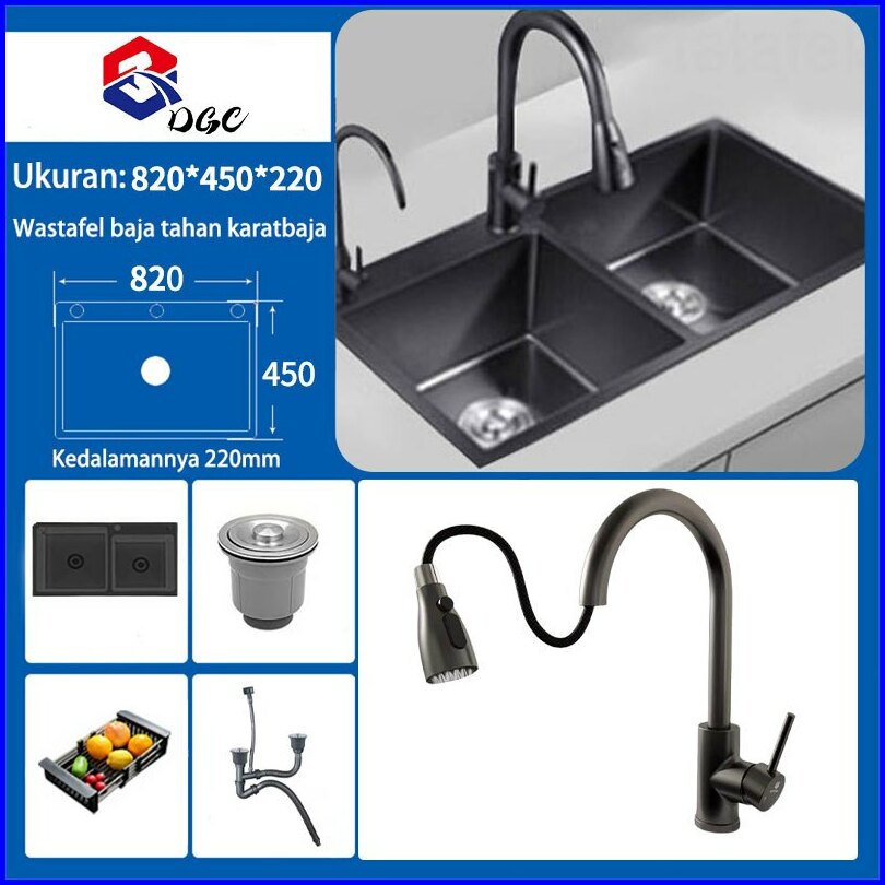 Dgc Kitchen Sink 304 Stainless 8245cm Bak Cuci Piring Hitam Cuci Piring Wastafel Ketebalan 3.0mm