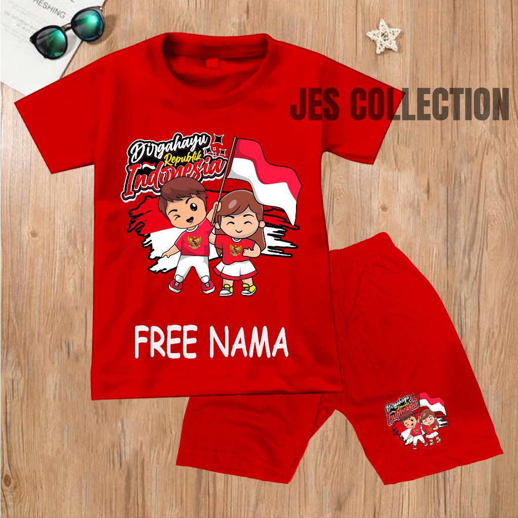Setelan anak (FREE NAMA) kaos Kemerdekaan Indonesia 17 Agustus Umur 1 - 10 Tahun