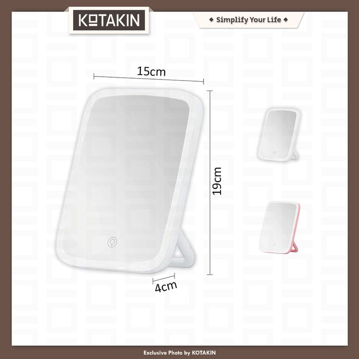 KOTAKIN Cermin Aesthetic Kaca Lampu LED Make Up Mirror Light Touchscreen Rias Meja Lipat Portable