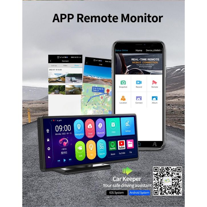 CAR DVR / Dashcam mobil 4G Ondash 10.26" 4GB+64GB. Wifi GPS BT Android System 10, IPS Screen