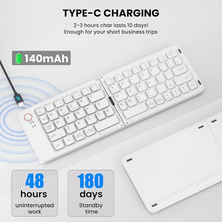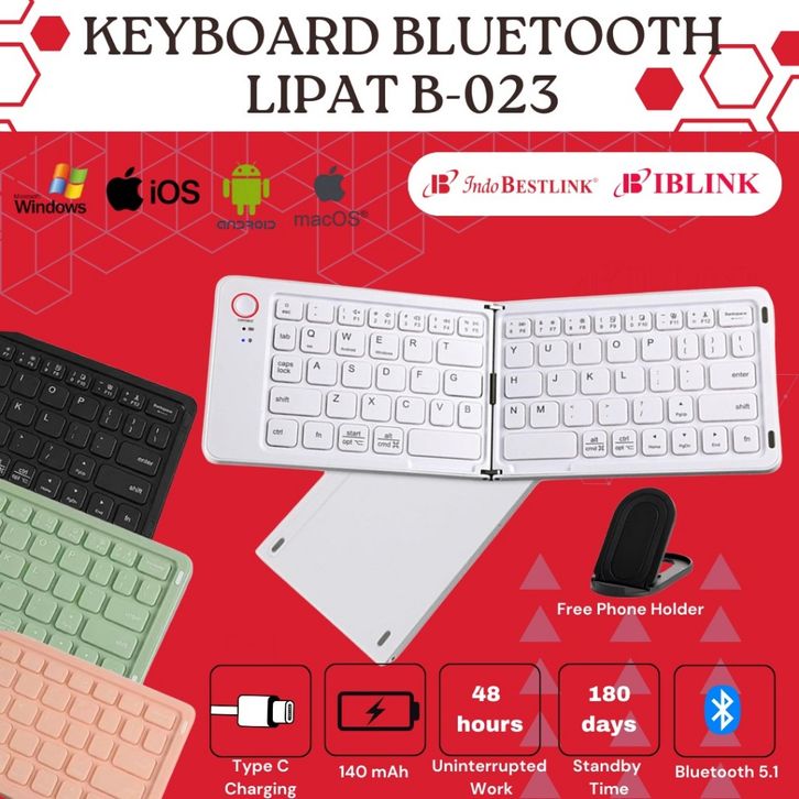 TERMURAH Keyboard Lipat Wireless Bluetooth Rechargeable Compatible Portable Keyboard Silent Typing with Stand for