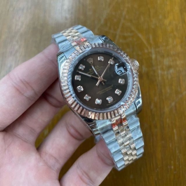 GROSIR JAM TANGAN ROLEX 31mm DATEJUST WANITA/CEWEK COMBINASI ROSEGOLD COKELAT AUTOMATIC JAPAN AAA