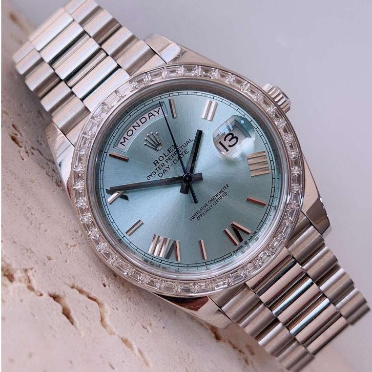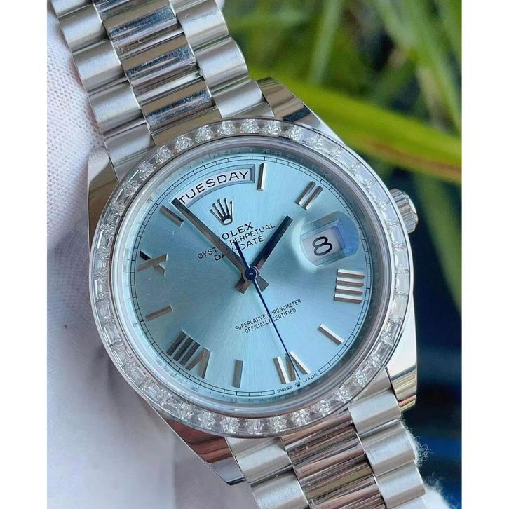 Original Jam tangan Rolex Pria Rolex Day-Date Series M228396tbr-0030 40mm Ice blue dial Automatic 18CT
