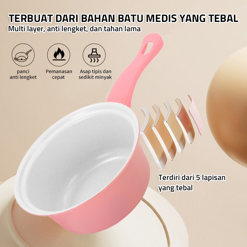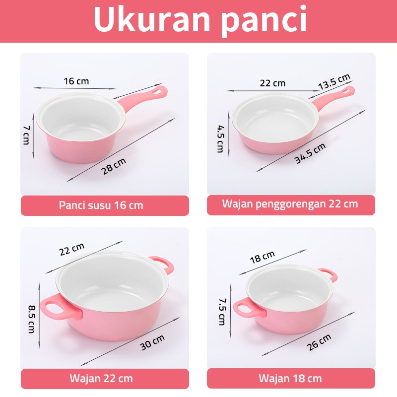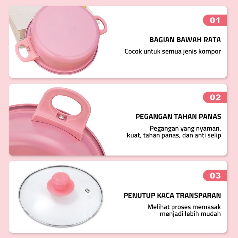 GM Bear | Set Panci dan Spatula Merah Muda 2193 | Wajan Penggorengan Spatula Set Frypan Saucepan