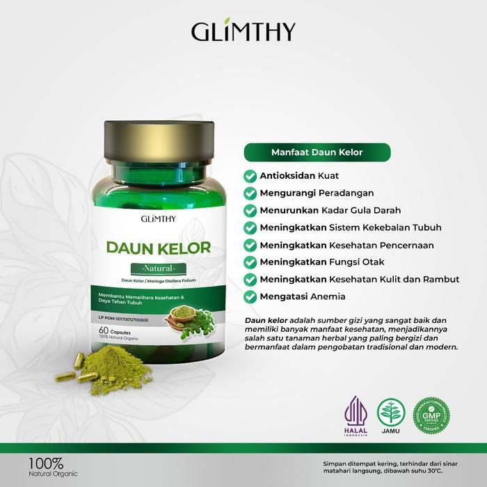Glimthy Original 100% Asli Kapsul Daun Kelor Ekstrak Moringa Oleifera Obat Herbal Kolesterol Asam Urat Benjolan Hernia