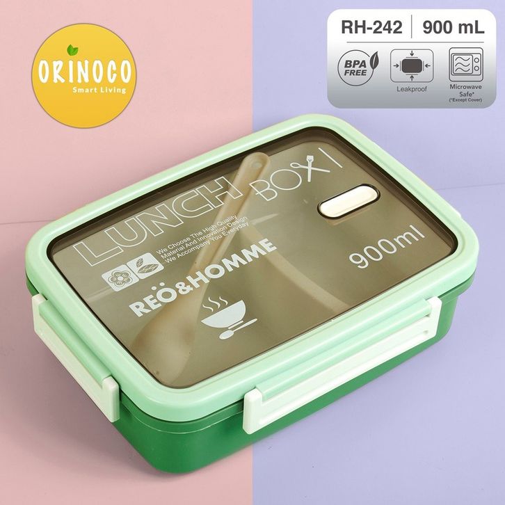 Orinoco Kotak Makan 2 Sekat RH-242 Anti Tumpah 900 ML Free Sendok Bpa Free dengan 2 Kompartemen