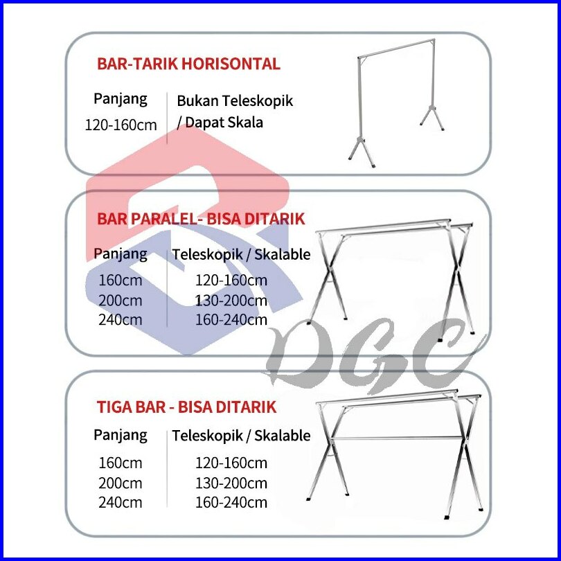 Dgc Jemuran Baju Lipat Stainless Jemuran Baju Portable Gantungan Baju Jemuran Pakaian Anti Karat Kuat Tempat