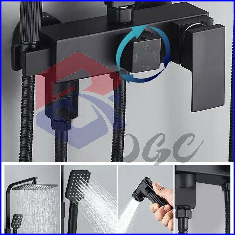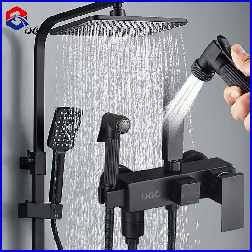Dgc 4 In 1 Shower Kamar Mandi Full Set Stainless Steel Kran Panas Dingin Hitam Kepala Shower Mandi Shower Set
