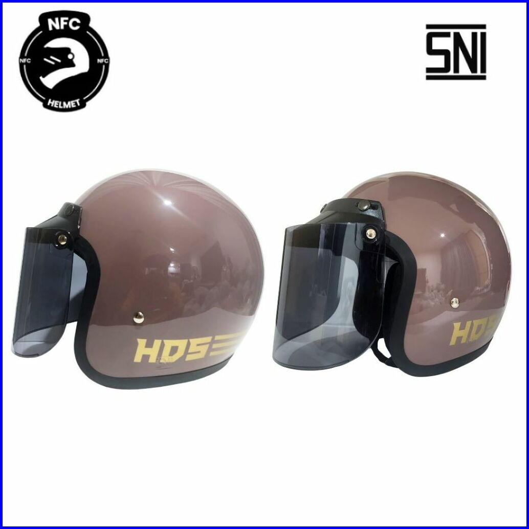 Helm Bogo Dewasa Classic Motorcycle Retro Sni Ori Cepol Wanita Pria Glossy Hijab Cepol Hds Orange Red