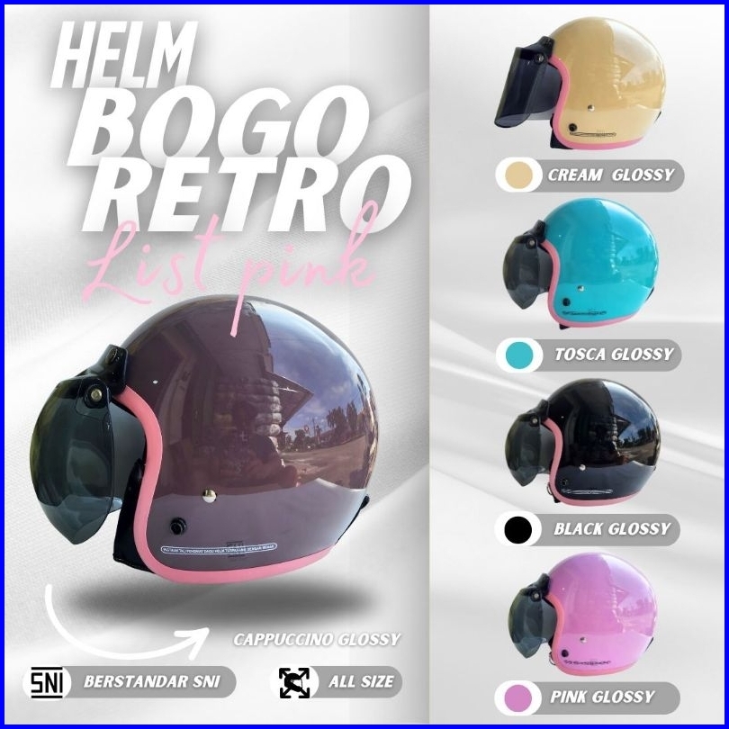 Helm Helem Bogo Retro Pastel Hds Helmet Motor Wanita Dewasa Hijab Cewek Cowok Pria