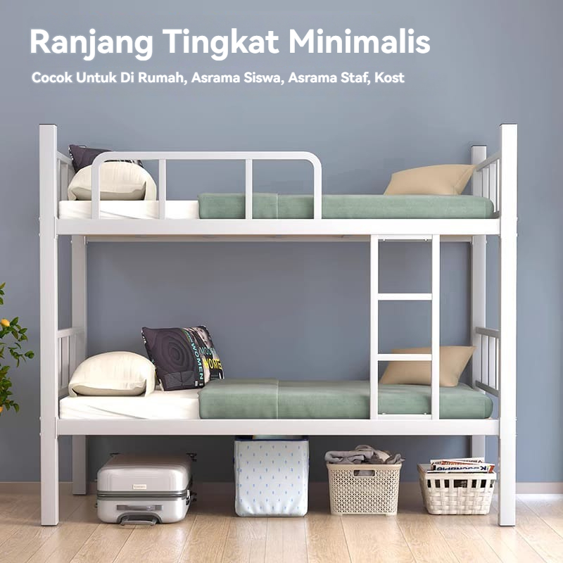 RANJANG TINGKAT BESI RANJANG SUSUN RANJANG TINGKAT 2 SUSUN BUNK BED MINIMALIS 90X200CM TANPA SORONG DIPAN TINGKAT