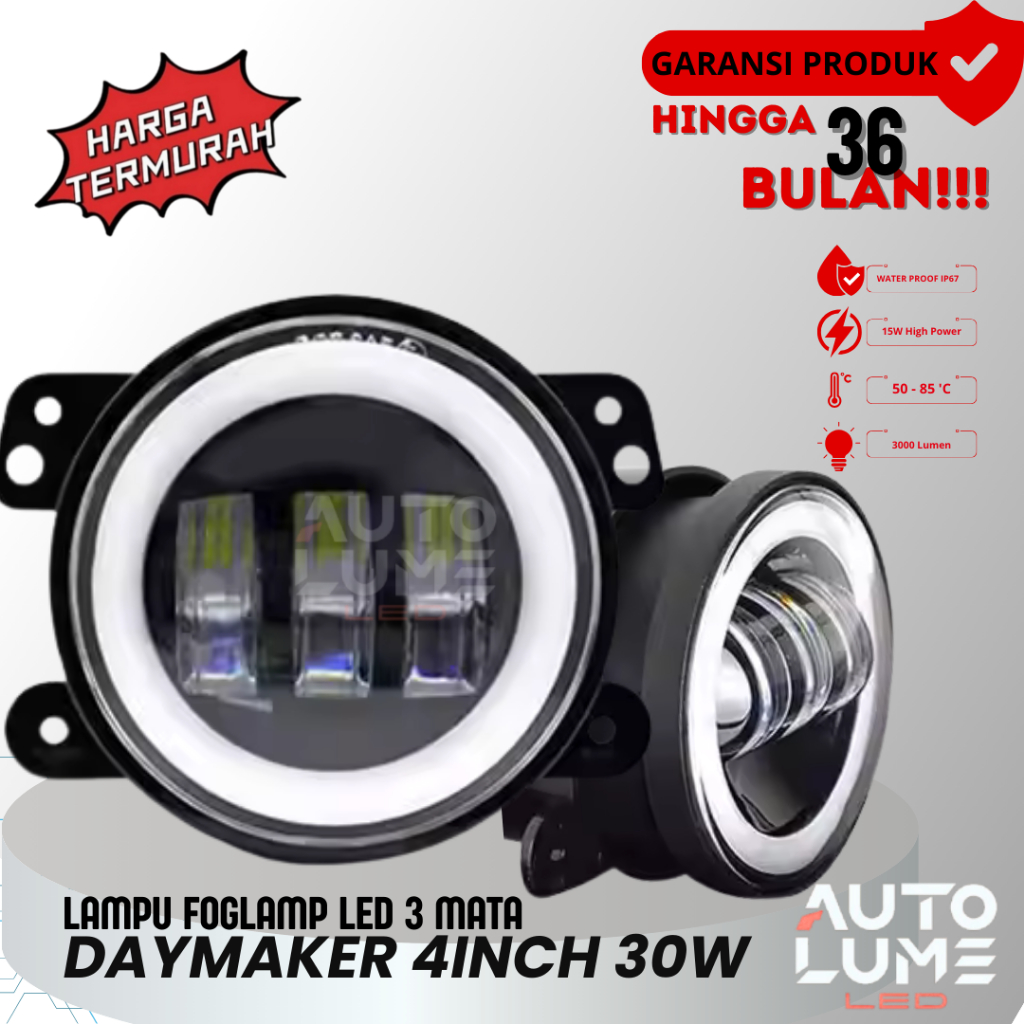 2 Pieces Lampu Foglamp LED 4 Inch | 3 Lensa Full Ring | 2 Warna (Putih & Kuning) | 60W | Cocok untuk Off-Road, Motor, Mobil& Jeep Wrangler