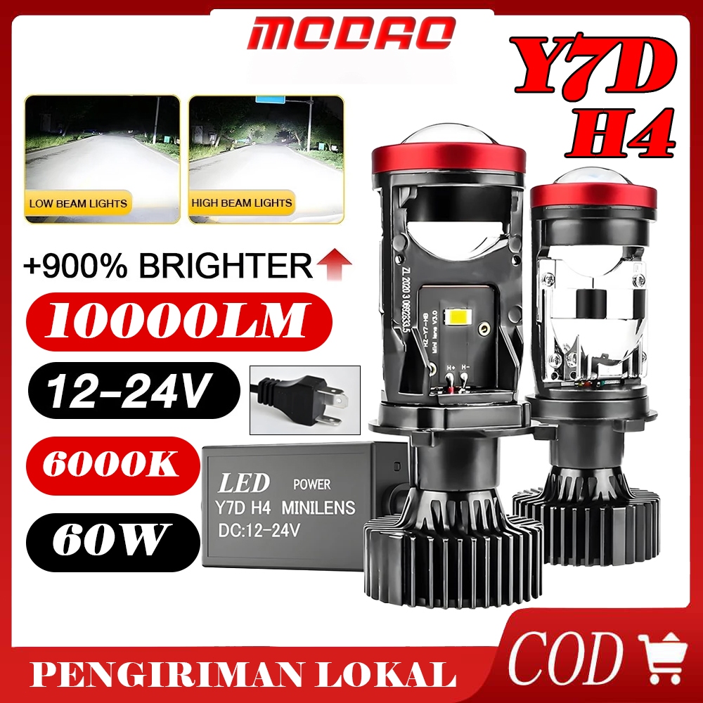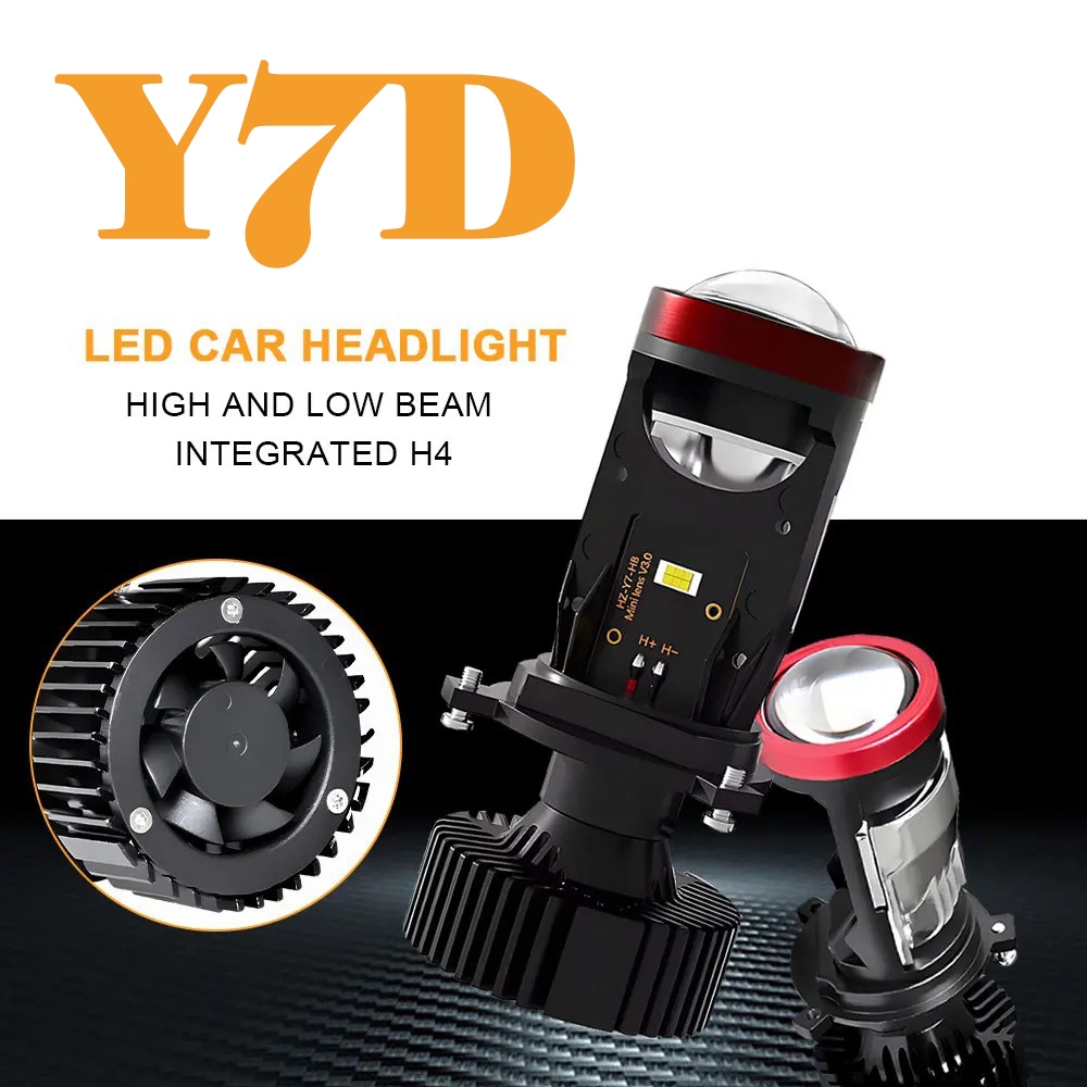 Lampu Led Mobil Dan Motor Y7D H4 Mini Projector Projie Daya Tinggi 60 Watt Dengan Kipas Lensa Cahaya Ganda Super Bright