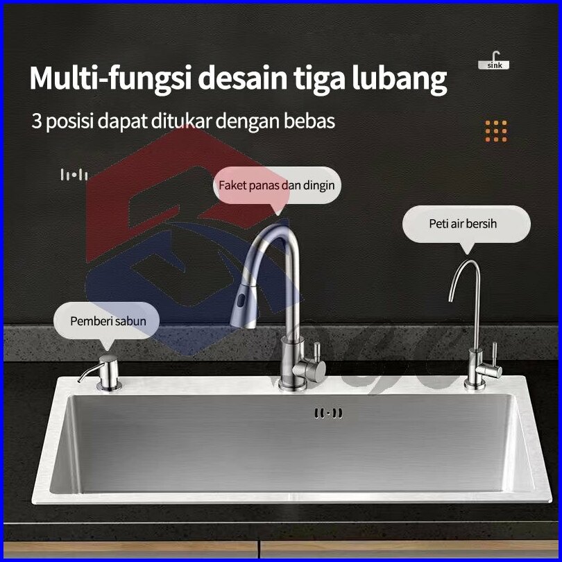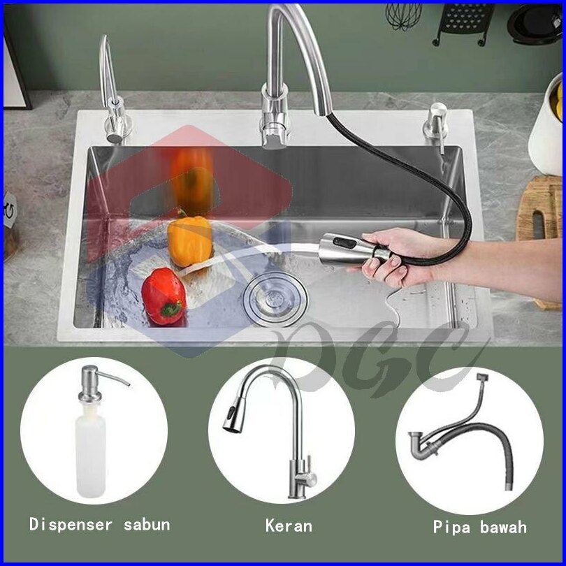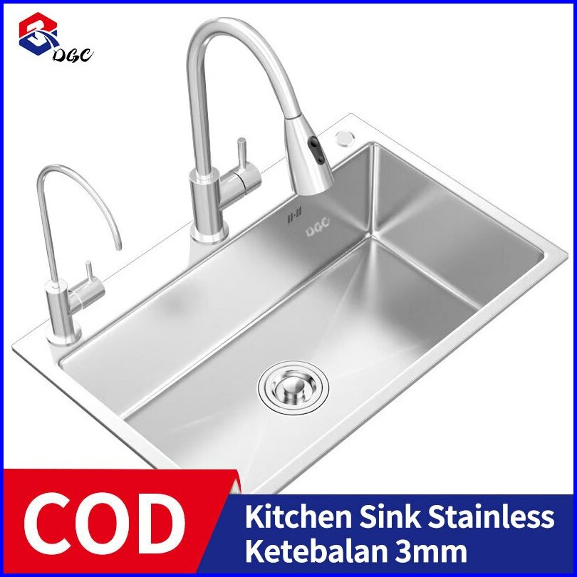 Dgc Sus304 Wastafel Cuci Piring Paket Kitchen Sink Bak Cuci Piring Kitchen Sink Stainless Steel Perak Ketebalan 3mm