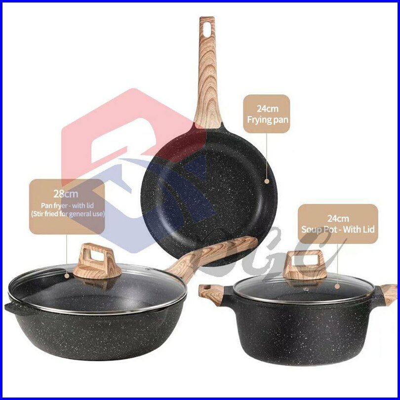 Dgc Putih Granit Antilengket Peralatan Masak 7pcs Wajan Panci Cookware Panci Set Wajan Serbaguna