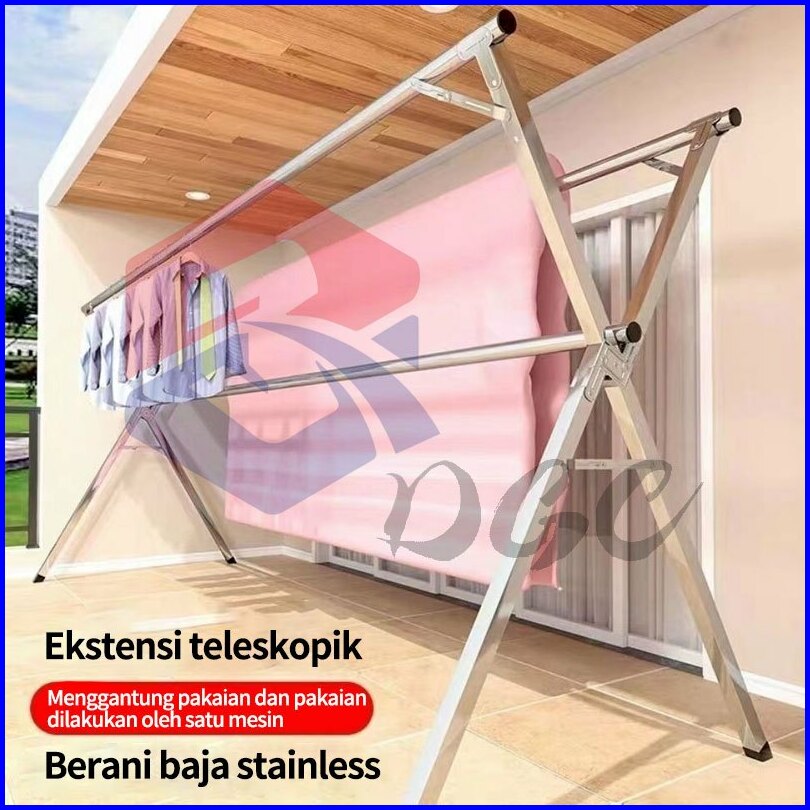 Dgc Jemuran Baju Lipat Stainless Jemuran Baju Portable Gantungan Baju Jemuran Pakaian Outdoor Indoor