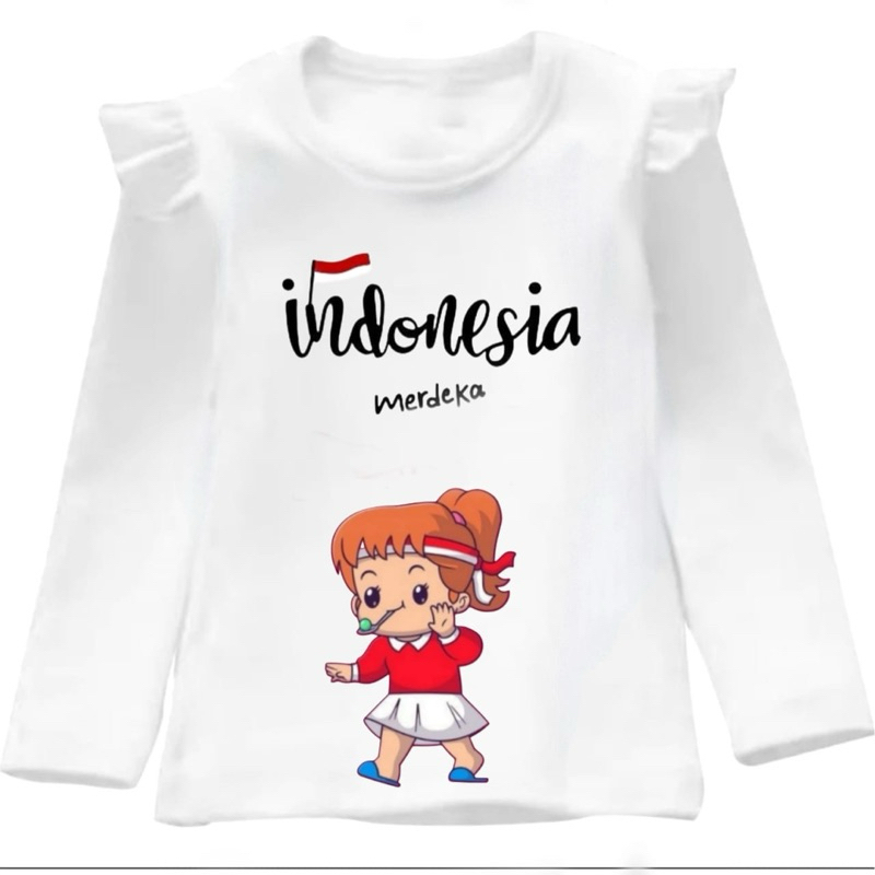 KAOS PANJANG RUFLE ANAK PEREMPUAN KAOS LENGAN PANJANG ANAK ANAK LUCU KAOS INDONESIA MERDEKA KAOS 17 AGUSTUS