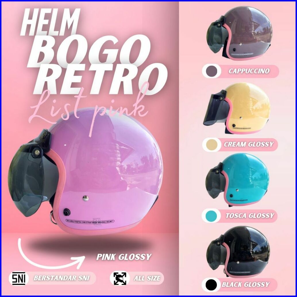Helm Bogo Dewasa Hijab Cewek Polos Half Face Hds Helmet Pria Wanita Sni Pink List Pink
