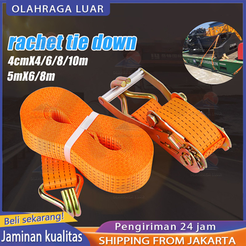 10 Ton Tali Kecepatan Ratchet Tie Down 4 cm x 6M/8M/10M 5CMx 6M/8M ,Lashing Track Trek Belt Trackbelt Tali Pengikat Barang Truck, Ratchet Tie Down
