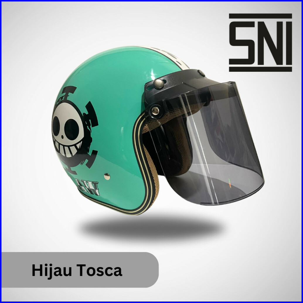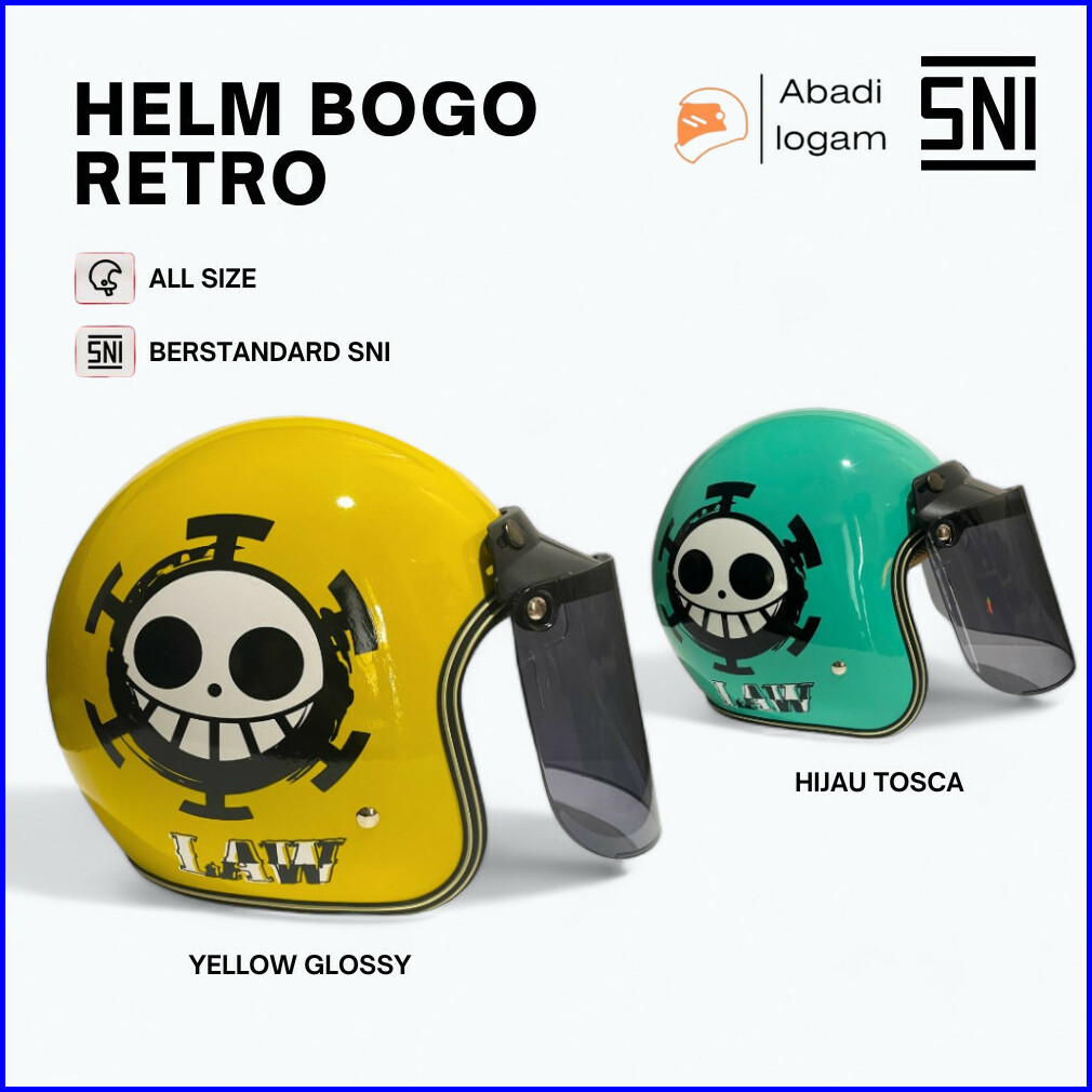 Helm Bogo Retro Motif One Piece Helem Pria Wanita Sni Trafalgar D Water Law Hds - All Size