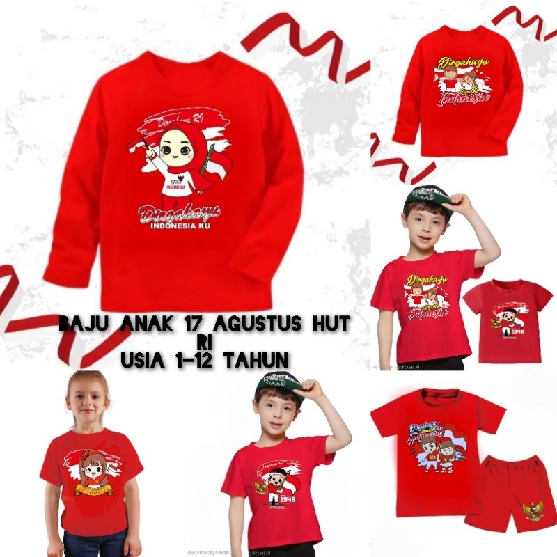 Kaos anak kemerdekaan HUT RI 1945 usia 1-12 tahun//Baju anak unisex HUT RI//Kaos anak lengan panjang 17 agustus 1945