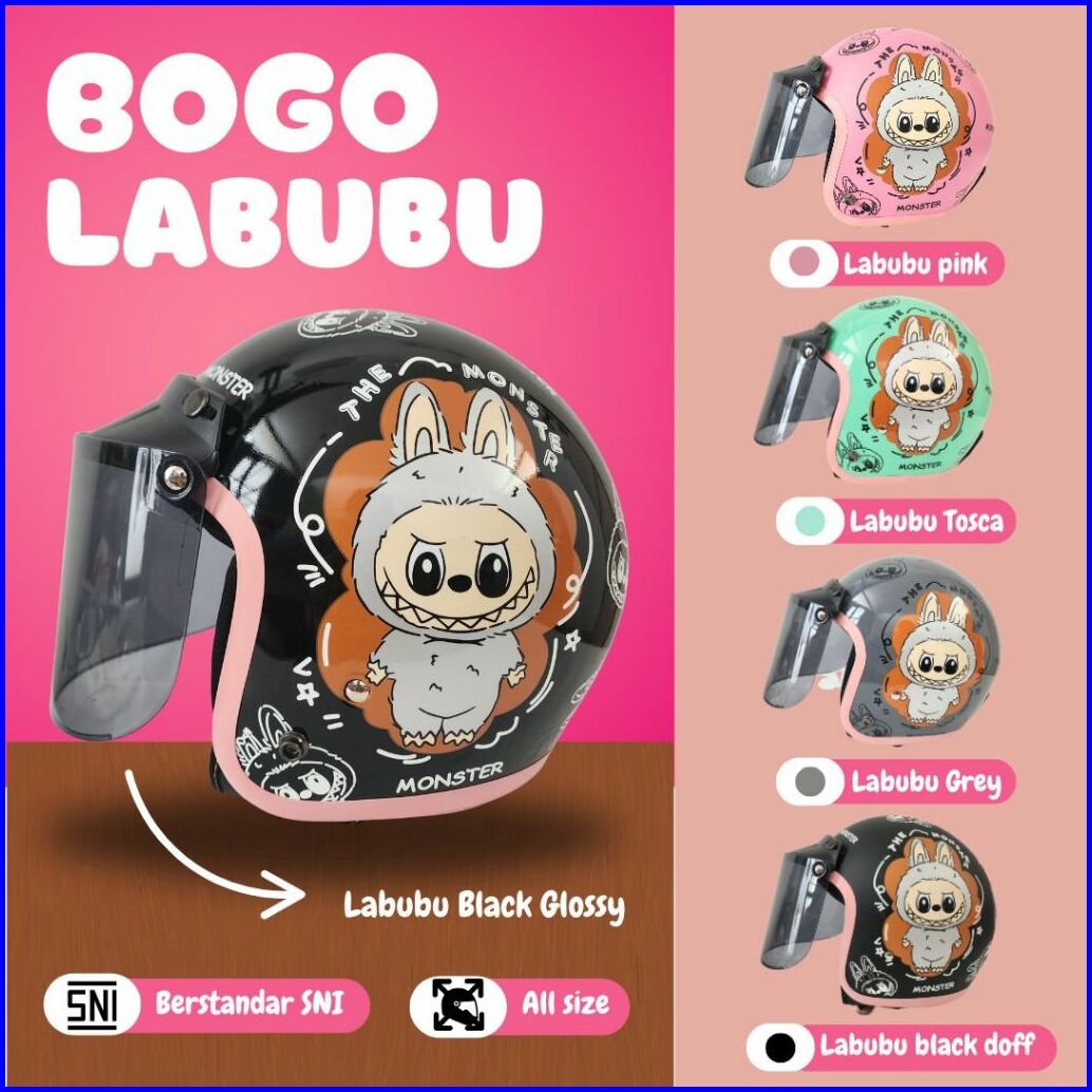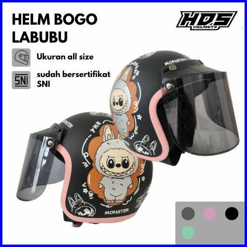 Helm Bogo Dewasa Half Face Motif Labubu Sni Hds Helmet Retro Cepol Hijab Wanita Pria
