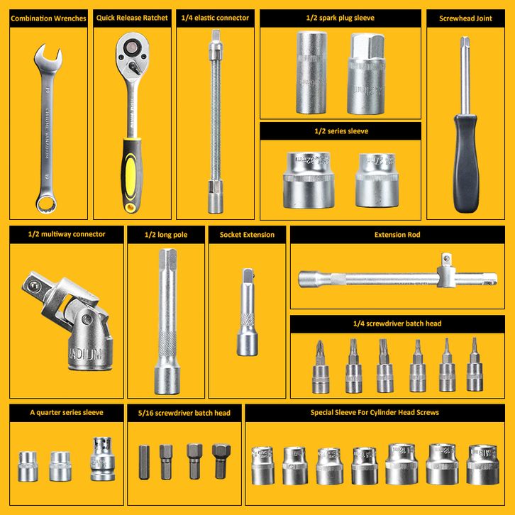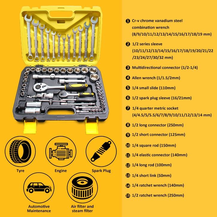 KEELAT 61Pcs Kunci Shock Socket Set【60HRC】CR-V Socket Full Lengkap Socket Tool Kit Pas Ring Motor Kunci Socket Wrench Pa