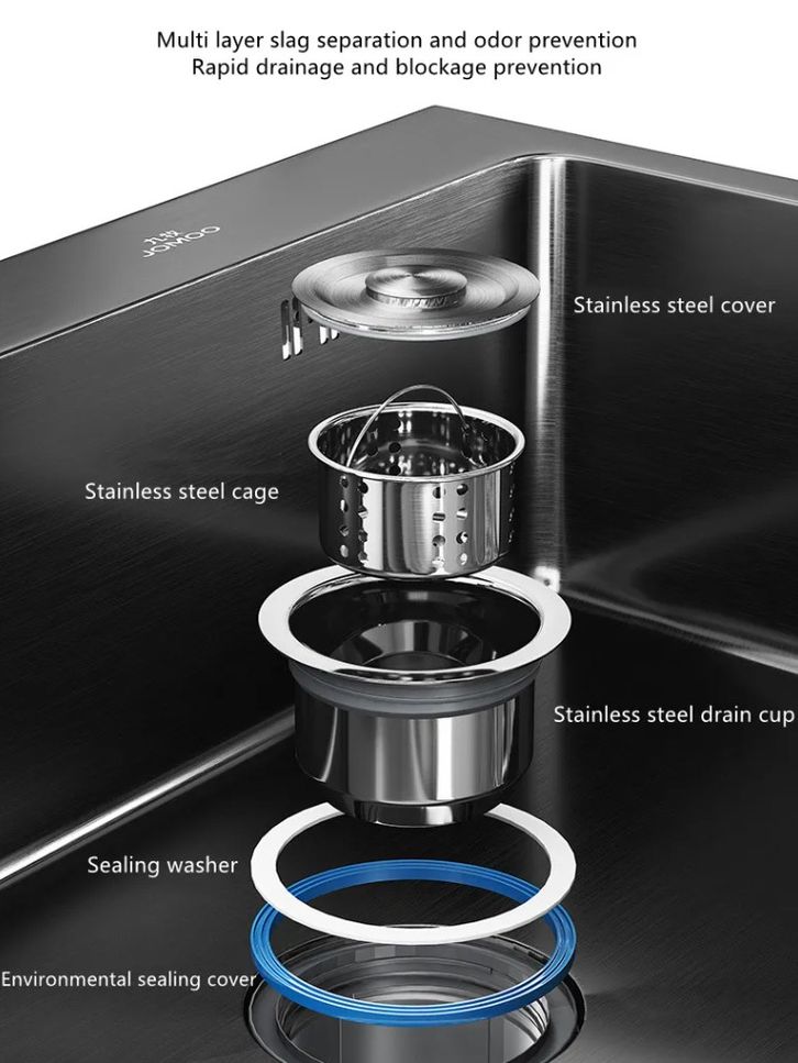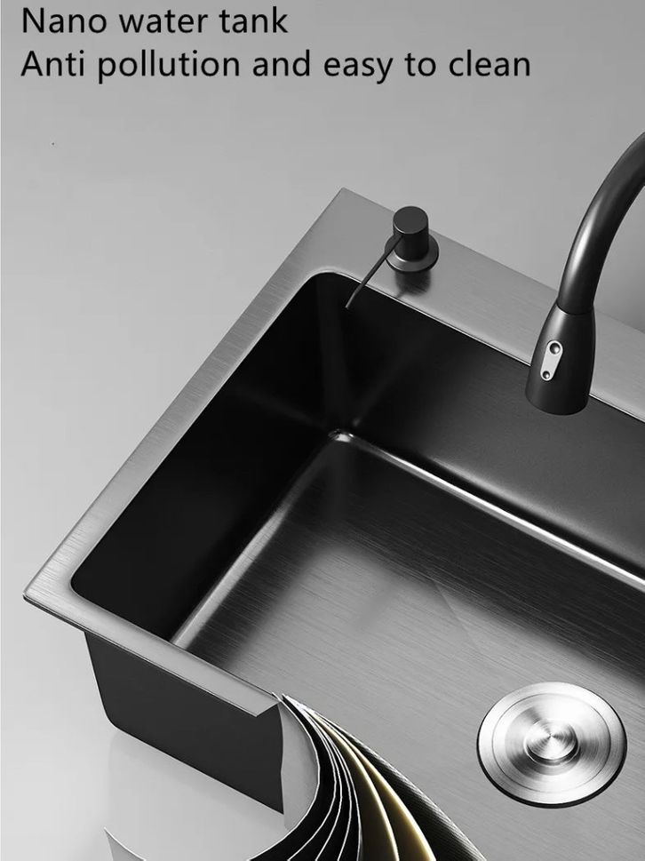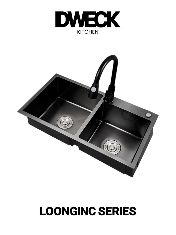 Wastafel Cuci Piring Set Stainless Kitchen Sink 8245 Black Paket Komplit 2 Lubang LOONGINC Series Gratis Ongkir