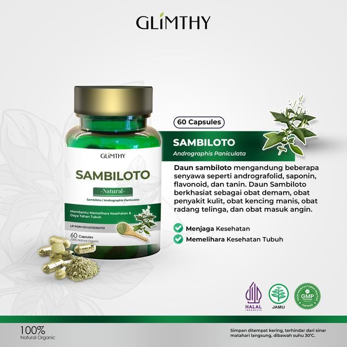 Glimthy Natural Daun Sambiloto - Obat gatal kulit eksim alergi biduran Herbal Kapsul Sambiloto - 1 Botol Isi 60