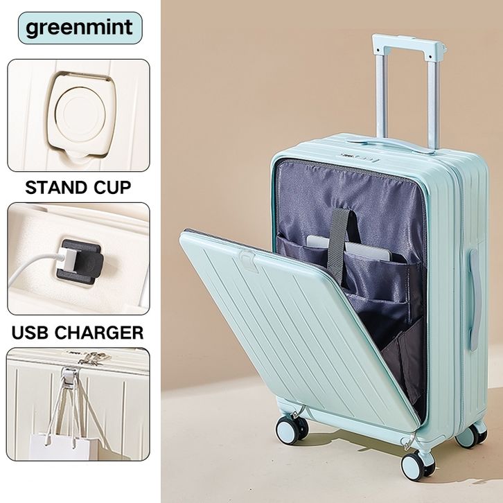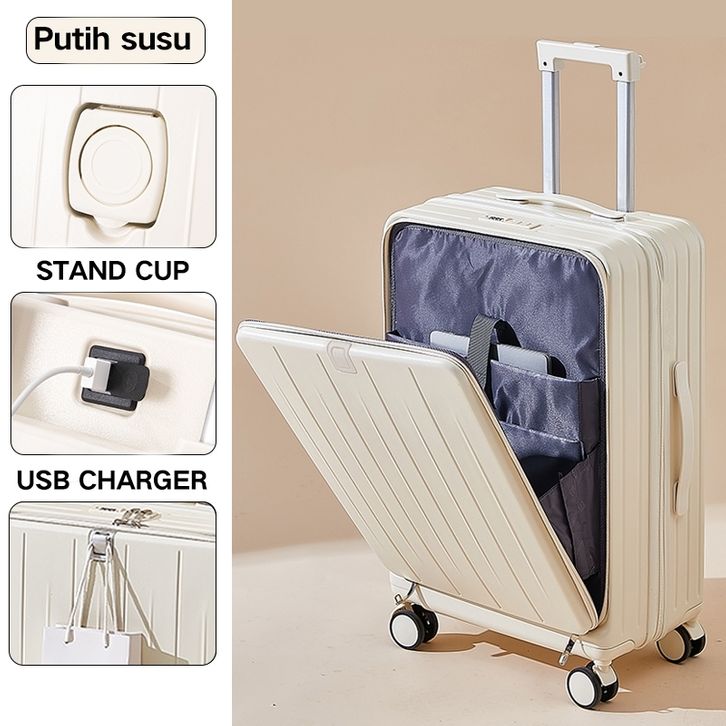 KoperTravel 【Siap】Koper Travel Depan Buka Ganda Resleting USB & Cup Holder - Cabin Size 20 Inch