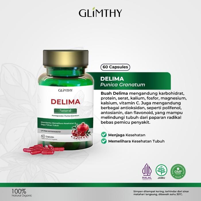 Glimthy Natural Kapsul Buah Delima - Capsule Pomegranate Original Antioksidan Alami - 1 Botol Isi 60