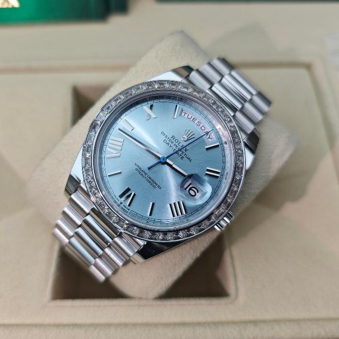 Original Jam tangan Rolex Pria Rolex Day-Date Series M228396tbr-0030 40mm Ice blue dial Automatic 18CT