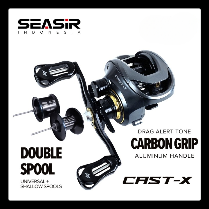 REEL PANCING SEASIR CAST X BAITCASTING BC+2 SW ALUMINIUM KIRI KANAN CASTING MAGNETIK GAGANG PEGANGAN SERAT KARBON